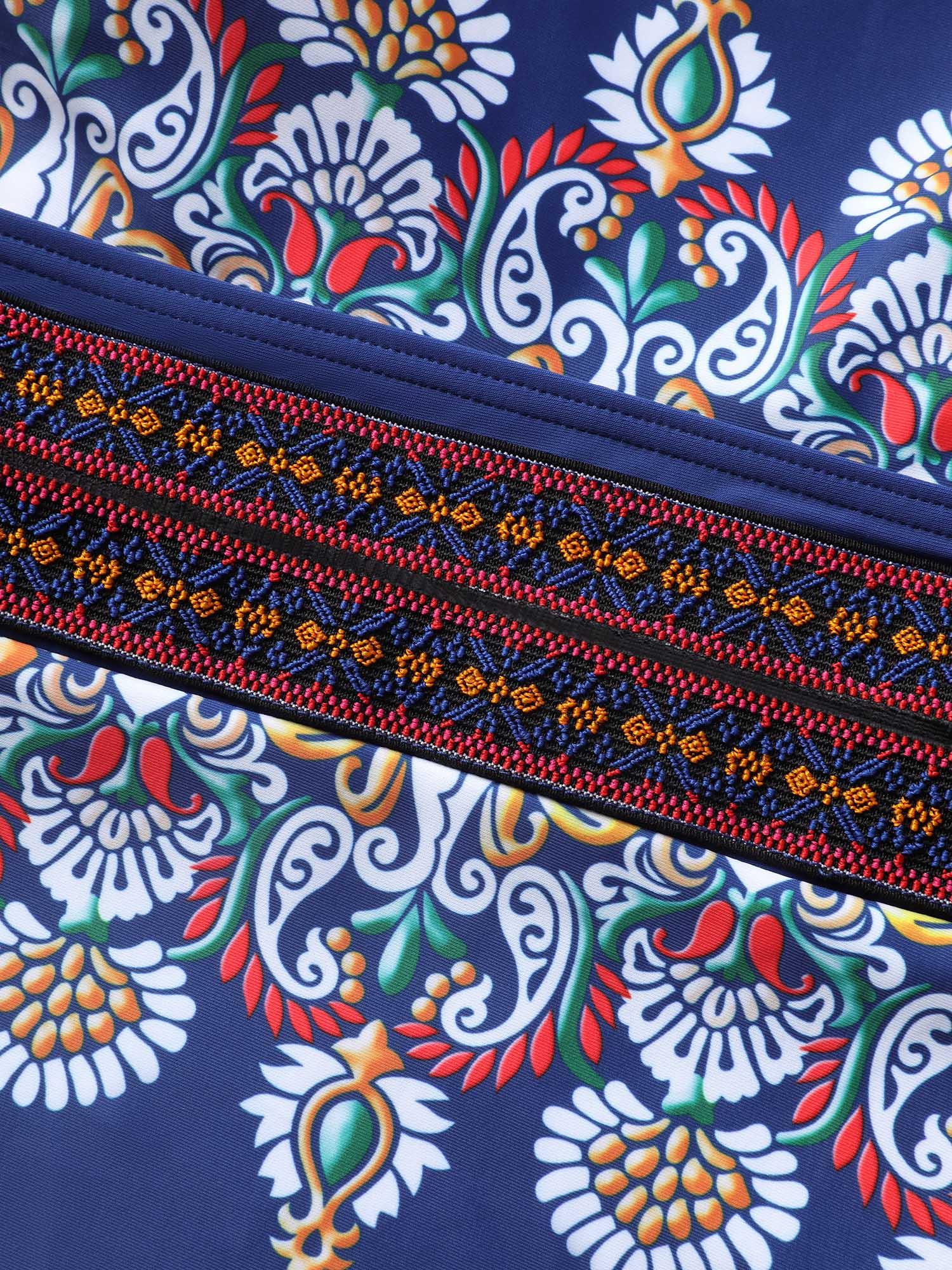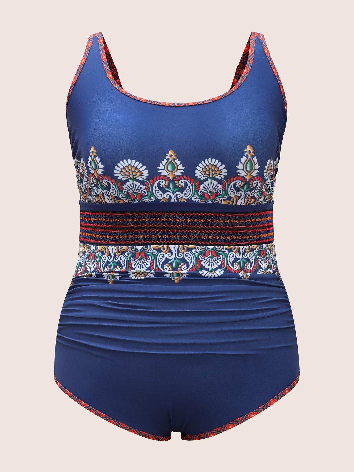 Shop U Neck Bandana Contrast Webbing One Piece Swimsuit now and redefine your style with confidence at BloomChic. Tailored for mid and plus-size women. This trendy Swimwear Women, sizes 10-30. Season:Summer;Color:Mediumblue;Style:Beach;Cup Type:Removable cups;Waist Design:High Rise;Neckline:U-neck;Sleeve Type:Sleeveless;Prints:Bohemian print;Details:Woven ribbon&lace trim, Gathered;Pocket:No-pocket;Belt:No-belt;Chest pad:Removable Padding;Lining:Lining;Closure Type:Non