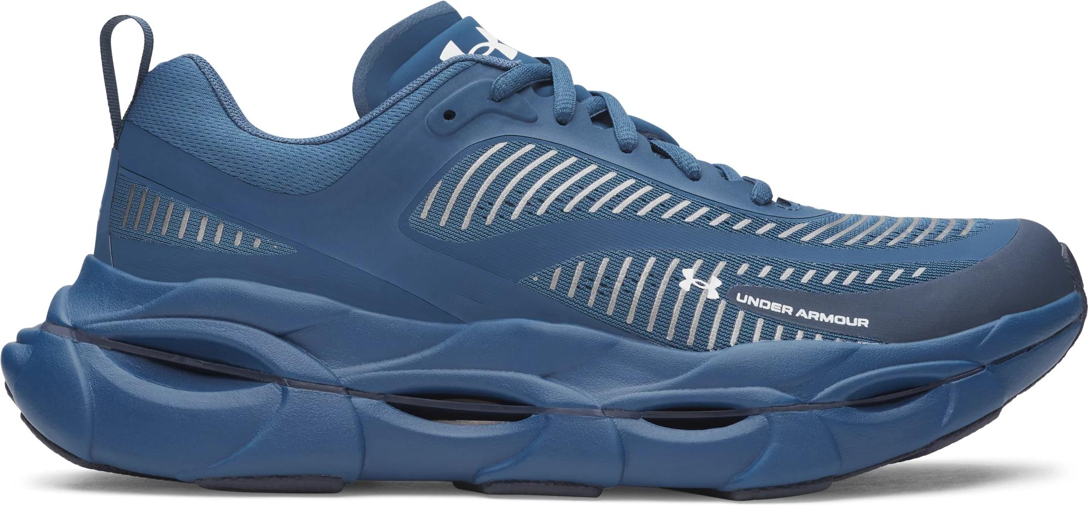 Soft but snappy HOVR+ foam gets livelier the more you push it, smooth rocker geometry amps up the momentum, and a supportive midsole "cradle" gives you more balance with less weight—so every step feels like liftoff.