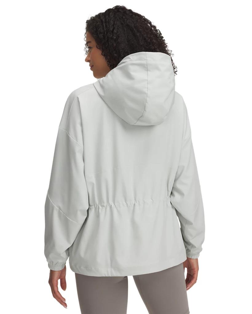 This woven jacket is the perfect lightweight layer. It's water-resistant, stretchy, and features a roomy, oversized fit with bungee waist cinch for a flattering look.