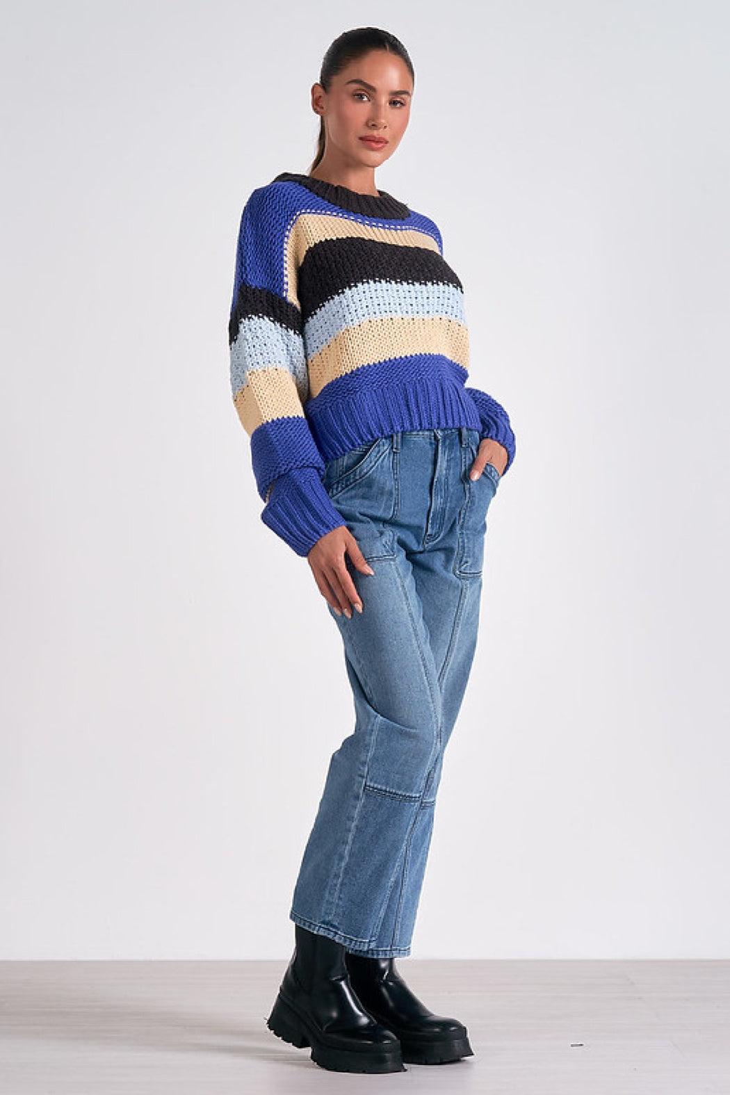 RSQ Womens Mix Stitch Stripe Sweater - BLUE COMBO