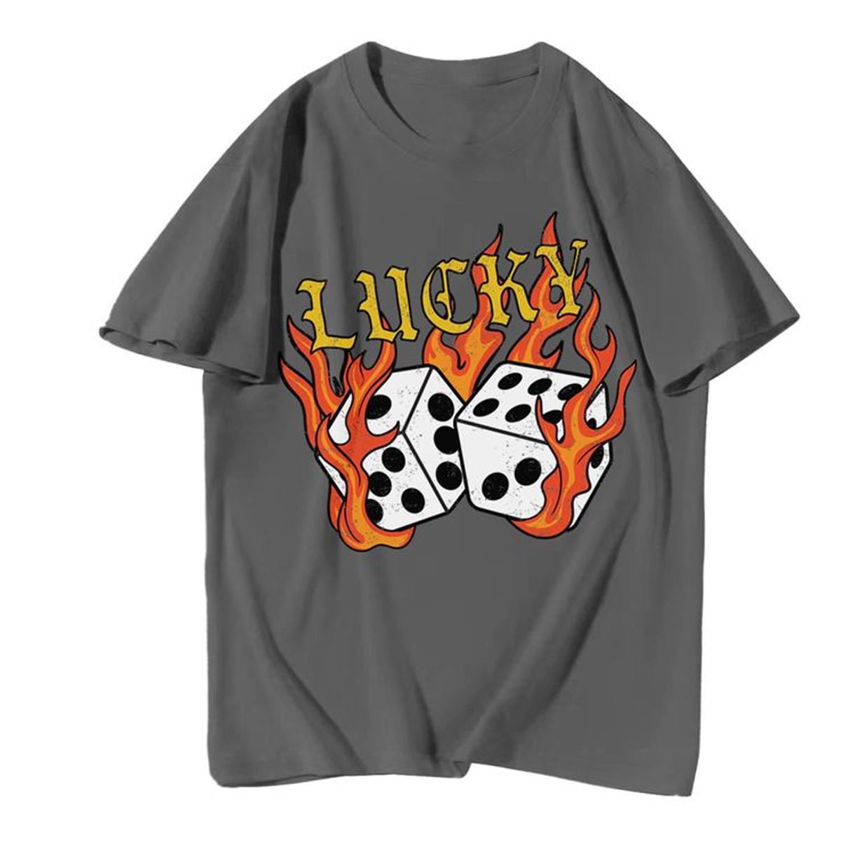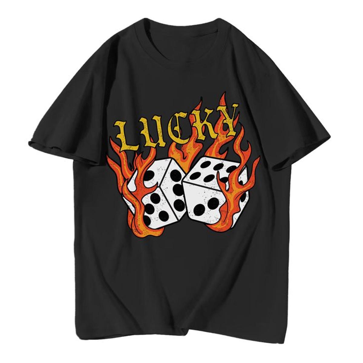 Udear Flame Dice & "Lucky" Round Neck T-Shirt