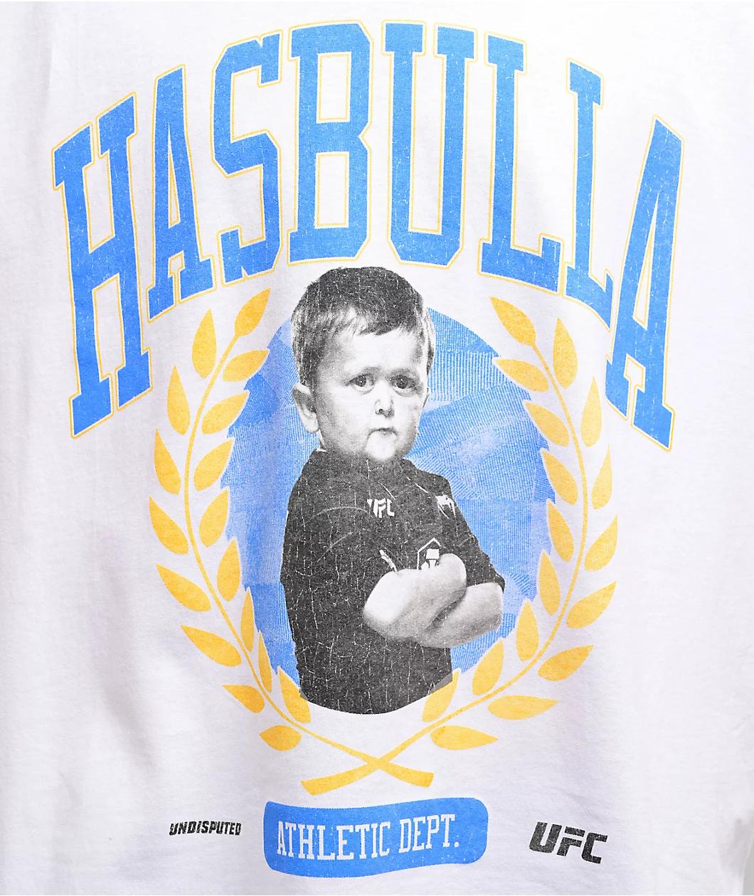 The Ultimate Fighting Championship celebrates promotional figure Hasbulla Magomedov with the Athletics t-shirt in a white cotton construction. Boasting a collegiate motif with printed graphics on the front, the short sleeve features bold, arched lett