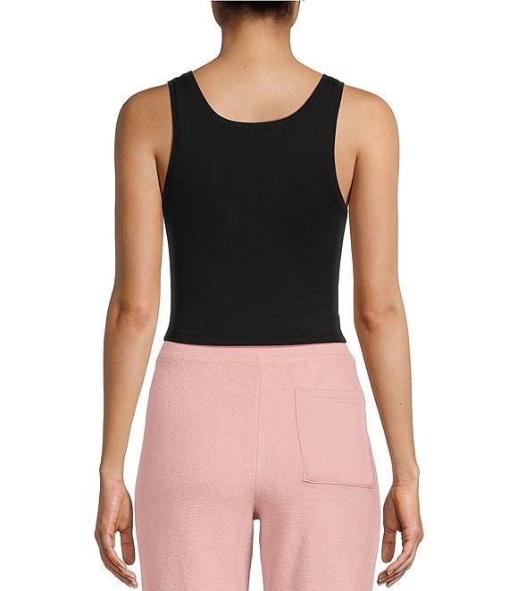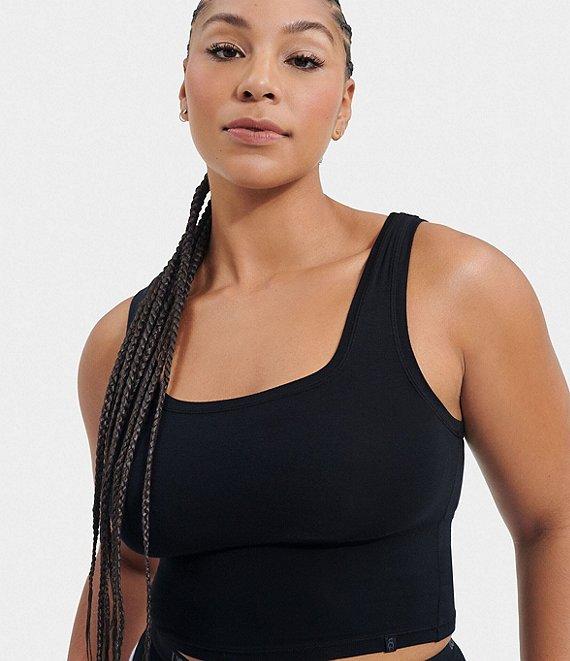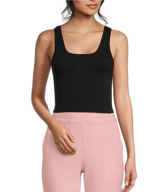 From UGG, this tank features: Square neckline Sleeveless Fitted UGG woven flag on the side Cropped length Approx. 16.5" length Ecovero viscose/elastane Machine wash cold/tumble dry low Imported.