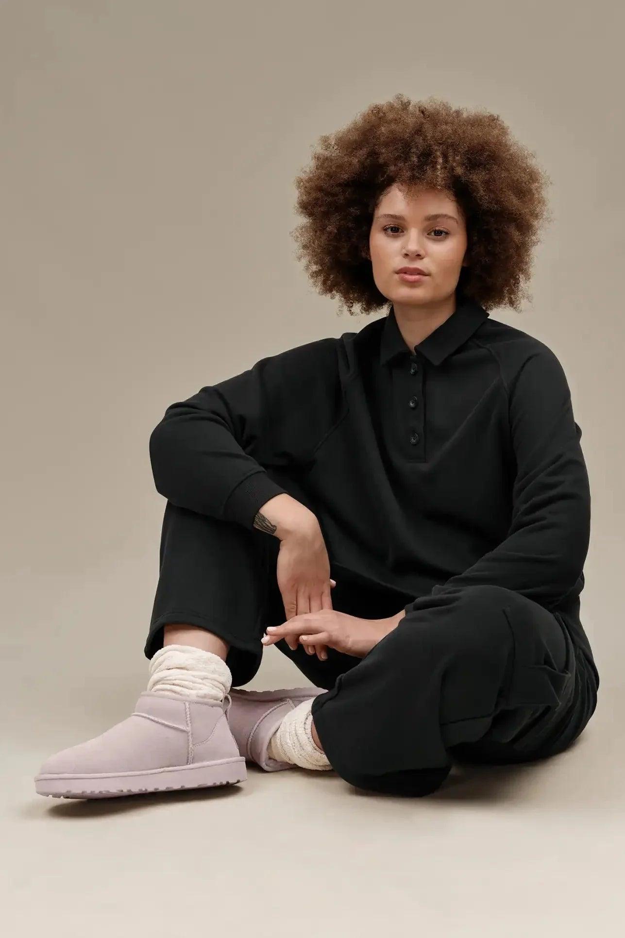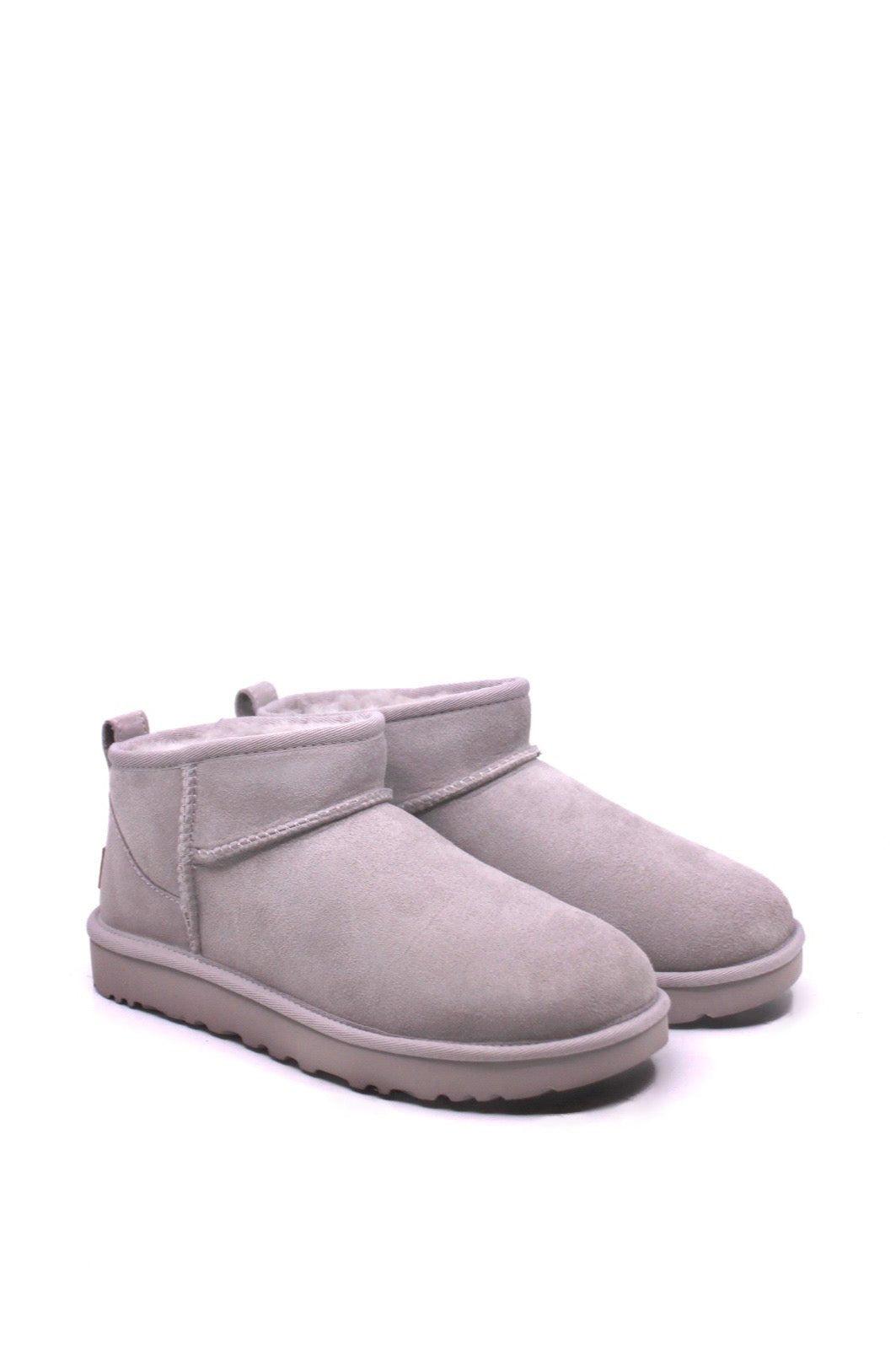 The Classic Ultra Mini Boot for women is one of the most coveted in their line of Classic sheepskin boots. With a lower shaft, it's easy to slip on and off, making it both practical and stylish. Featuring all the beloved qualities of our original Classic Boot, including signature UGG sheepskin and a super lightweight sole, this ankle boot truly has it all. Plus, we've treated it post-production so it's stain and water repellent. In a variety of colors, from classic blacks and browns to trendy neutrals, there's a perfect pair for everyone. To top it off, this product was made in a factory that supports women in our supply chain through the HERproject, an initiative that empowers and educates women in the workplace. Its outsole is either a sugarcane EVA outsole, a sustainable compound using sugarcane foam to reduce fossil fuel dependency, or a Treadlite by UGG™ outsole.