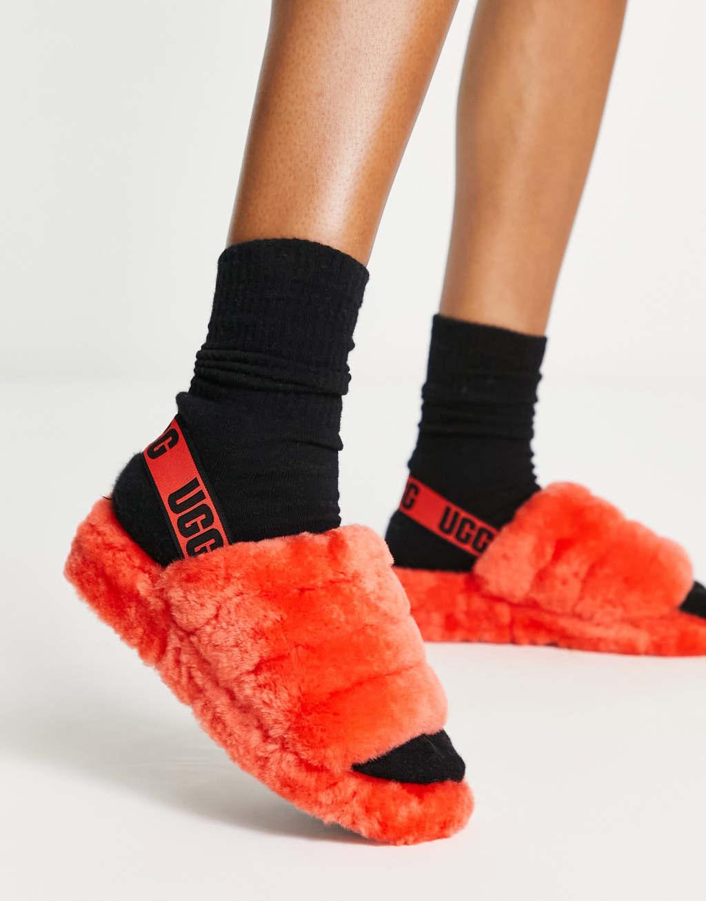 UGG Fluff Yeah slides in hazard orange