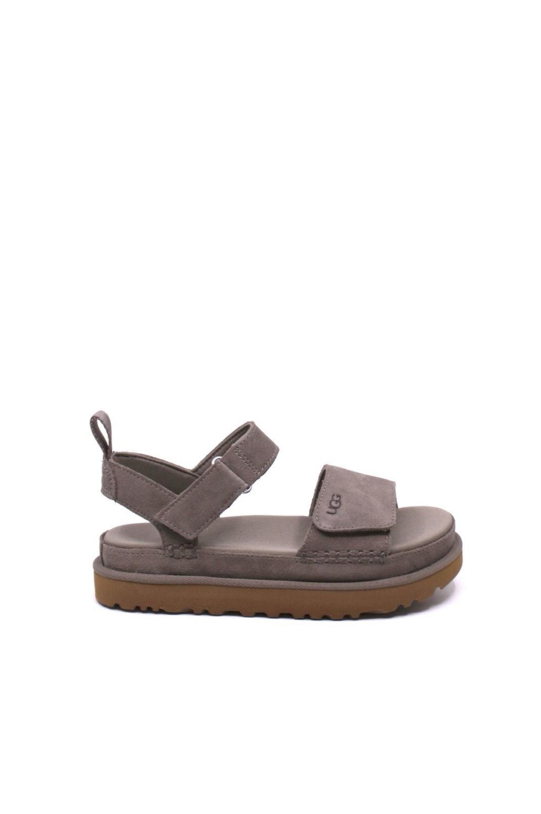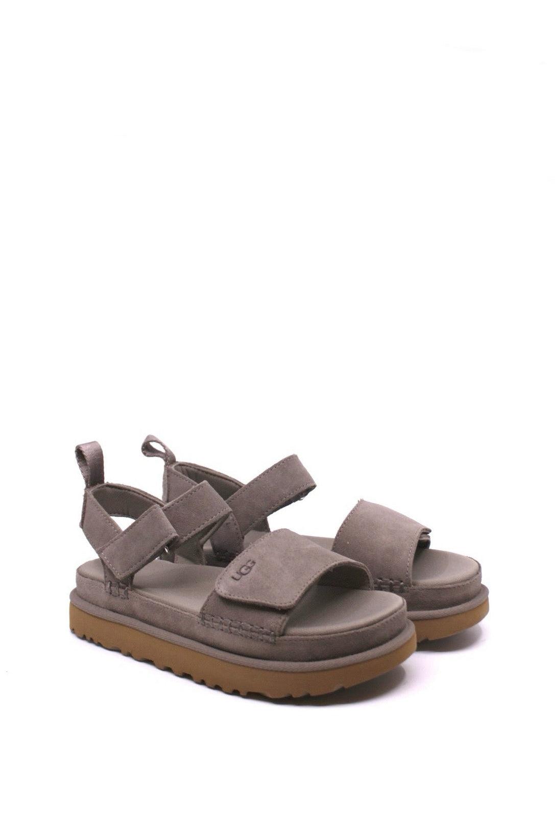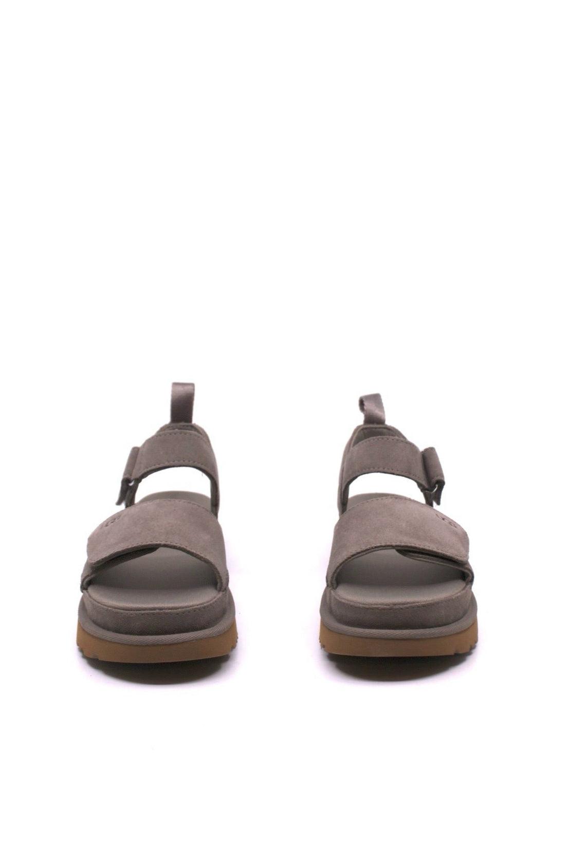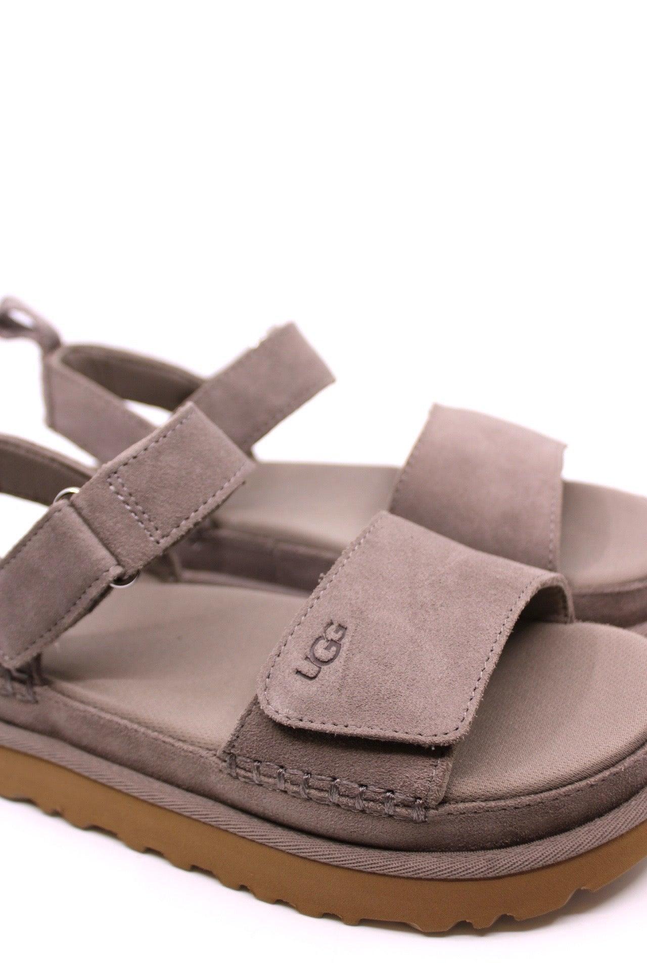 The UGG ® Goldenstar in Smoke Plume is crafted from a velvety suede. This minimalist platform sandal offers a wear-with-everything style and a custom feel. Two sets of adjustable straps provide a fine-tuned fit, while the contoured foam footbed and Treadlite by UGG™ outsole deliver all-day cushion and support.