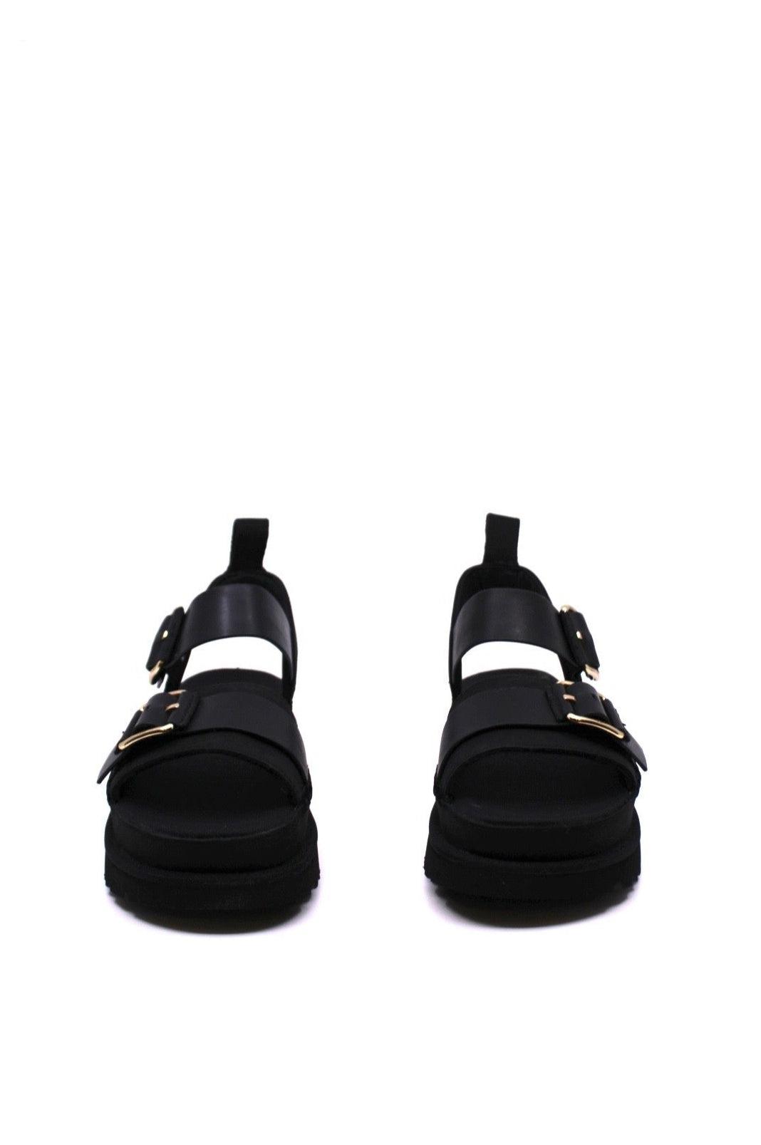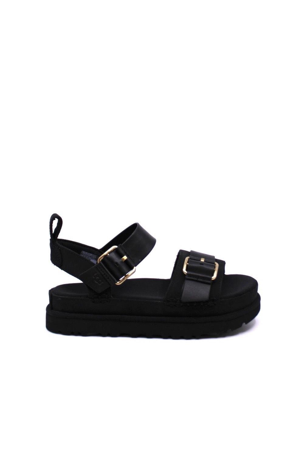 With its renewable sugarcane EVA sole and contoured footbed, our Goldenstar Villa sandal offers lightweight comfort for both far-off destinations and local explorations. Crafted from a combination of soft Nubuck and genuine leather, the straps include an adjustable ankle buckle for a personalized fit. With unique touches such as our Overstitched Binding and box stitch details, the Goldenstar Villa embodies the quirky and fun feel of UGG® for the warmer months.