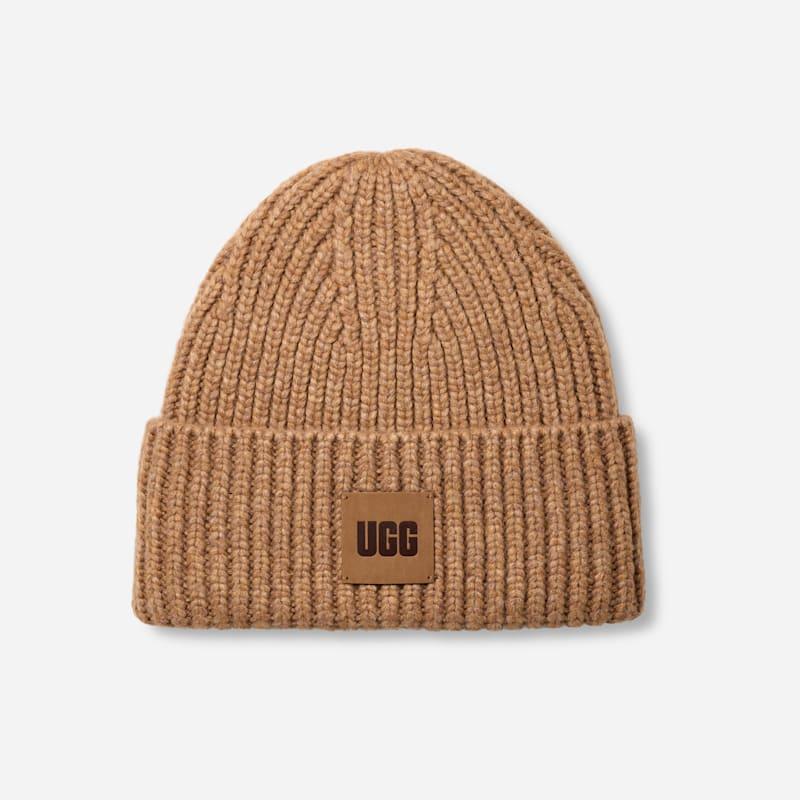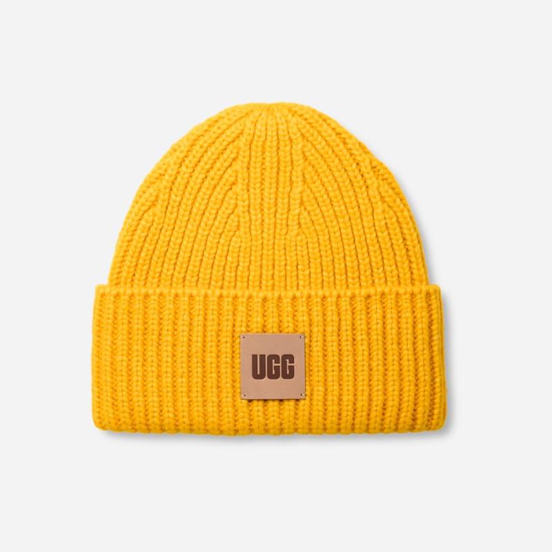 Made from a cozy wool blend, this best-selling beanie features a chunky rib-knit fabric and woven The UGG Logo patch that youll want to wear all season long. Chunky Rib beanie. Self - 50% Recycled Polyester/21% Recycled Nylon/23% Acrylic/6% RSW Wool. Lining - Unlined. The UGG Logo woven patch with contrast zig zag stitch. 9 inch H from top of cuff to crown. Imported. UGG Mens Chunky Rib Beanie Polyester Blend in Summer Wheat