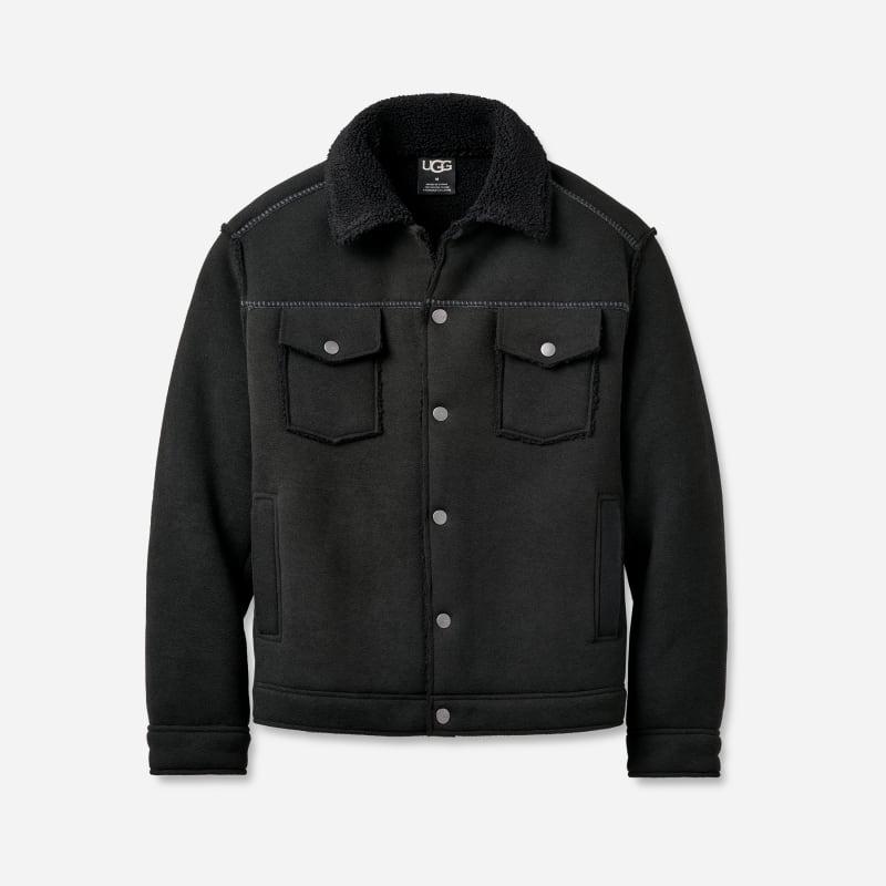 A classic trucker jacket meets the Feel of UGG with our Janson UGGfluff Jacket II. Designed with our signature UGGfluff, this versatile jacket has a raw feel with exposed seams, and heritage nods with our iconic Twin Seam detailing. Plush fleece trucker jacket. Self - 40% Polyester/60% Recycled Polyester. Lining -. Chest Pockets with Snap Closure. Center front placket with UGG snap closures. Lower Welt pockets with soft fleece inchhand warmer inch pocket linings. The UGG Logo label on cente