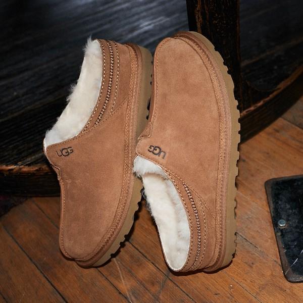 From UGG, the Mens Neuman Suede Slippers feature:Suede upperUGG Tasman braid embroideryapprox. 17 mm UGGpure wool liningapprox. 17 mm sheepskin liningapprox. 17 mm UGGpure wool insoleFoam footbedTreadlite by UGG outsole for comfortImported.