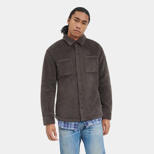 Blend plush fleece comfort and cozy style effortlessly with the UGG Tazman Snap Shirt. Made in factories that support women in the supply chain and in partnership with HERproject, this unlined shirt provides a collaborative initiative to empower and educate women in the workplace. The Tasman-inspired trim tape at the inner placket ensures a durable and adjustable feel, while the UGG graphic internal woven label brings brand authenticity. Sporting the Sunflake UGG logo snaps with a rubber finish on the front placket, the UGG Tazman Snap Shirt offers premium branding and lets you show off your classic street style. Regular fit ensures a relaxed feel. Front patch pockets provide storage space. Length (Size M): 30 3/4. Self: 100% recycled polyester; Contrast: 100% polyester. Imported.