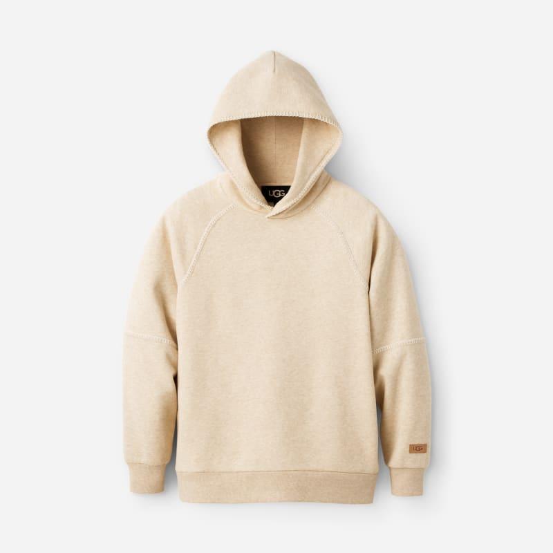 Our Classic Hoodie embodies the spirit of our Classic Boot in an equally cozy sweatshirt. Designed with brushed-back fleece, whipstitch detailing, and an overlapping neckline, this is one hoodie you wont want to lend out. We recommend pairing the Classic Hoodie with the Classic Sweatpant for an elevated level of UGG comfort. Hooded sweatshirt. Self - 55% Responsible Cotton/45% Recycled Polyester. Rib Knit - 96% Responsible Cotton/4% Elastane. Responsible Cotton means: responsible cotton sourci