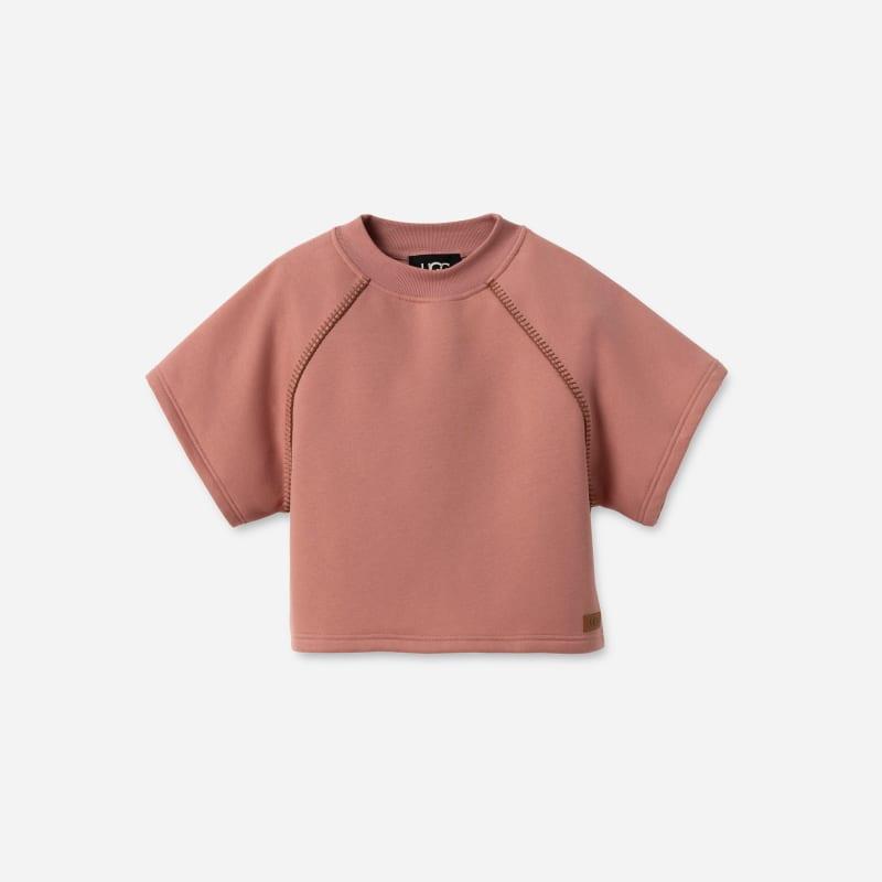 Feeling sporty, might chill later. The Classic Short Sleeve Crewneck is our ultimate tee made with Responsible Cotton with soft rib knit hits. Slightly cropped with tonal whipstitch and raglan sleeves, this tee pairs flawlessly with our Classic Short and Classic Sweatpant. Short sleeve raglan crewneck sweatshirt. Self - 55% Cotton/45% Recycled Polyester. Made from Responsible Cotton. Rib Knit - 96% Cotton/4% Elastane. Lining - Unlined. Whipstitch detail on seams. The UGG License Plate, leather label. 20 inch HPS Length [Size S]. 25 inch HPS [Size 2X]. Pairs with the Classic Short or Classic Sweatpant. Imported. UGG Womens Classic Short Sleeve Crewneck Cotton Blend/Recycled Materials Hoodies & Sweatshirts in Pink Dawn, Size L