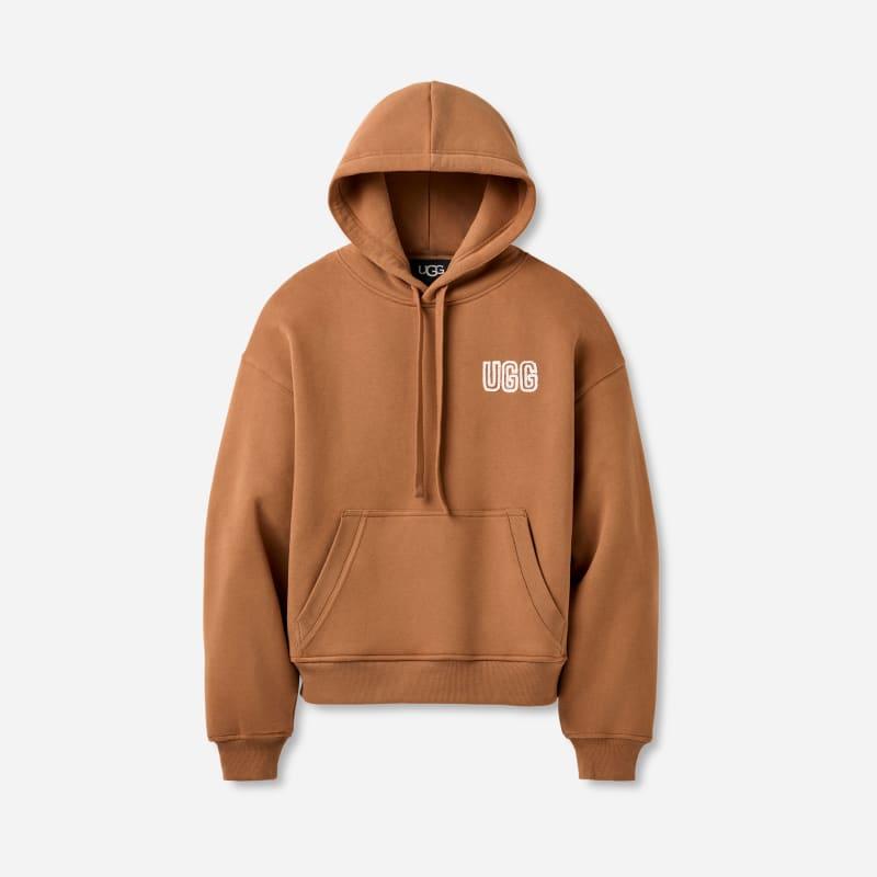 Comfy, cozy, cool - what more could you want from our UGG Logo Hoodie? Our favorite layer is made with a soft cotton blend from Responsible Cotton finished with The Graphic UGG Font appliqu in chenille knit yarn. Hoodie sweatshirt. Self - 55% Responsible Cotton/45% Recycled Polyester. Rib knit - 96% Responsible Cotton/4% Elastane. Responsible Cotton means: responsible cotton sourcing scheme cotton, recycled cotton, or organic cotton. Lining - Unlined. Hood with drawcord. The Graphic UGG Font