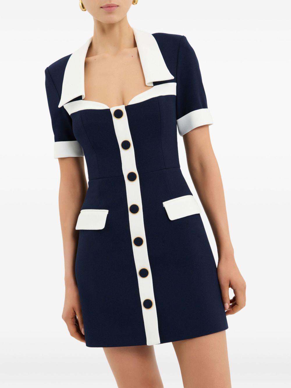 Rebecca Vallance Ula button-fastening mini dress | Blue | navy blue | button detail | collar | short sleeves | front pockets | zip fastening | Polyester/Elastane | Day Dresses | Dresses | Clothing | Women