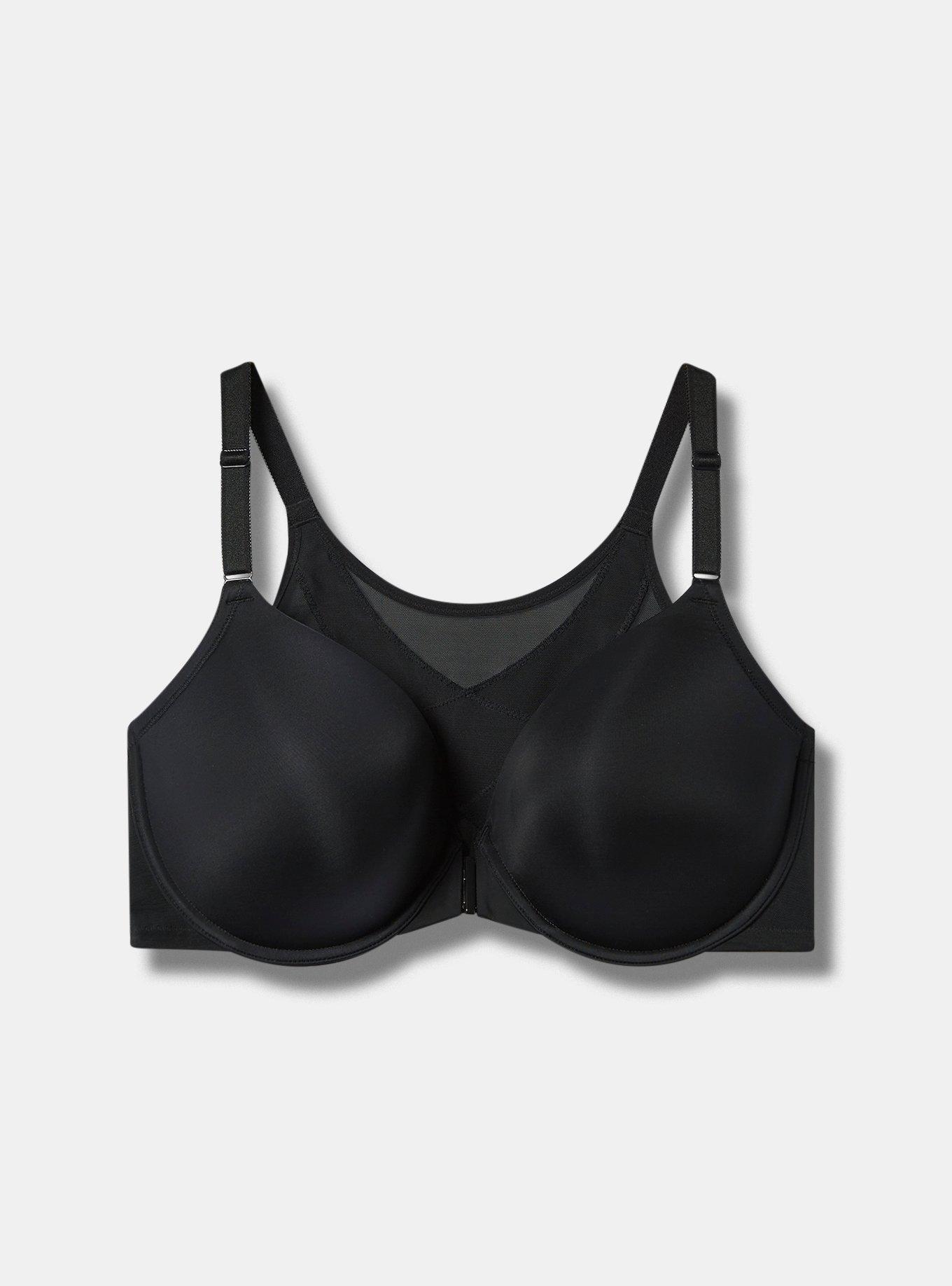 FITPerfect coverage silhouette.Underwire cups.Lightly lined.Ultimate Smoothing for total back smoothness and support.MATERIALS + CAREMicrofiber and mesh fabric.79% nylon, 21% spandex.Hand wash cold. Line dry.Imported.DETAILSFront-adjustable straps.Front closure for easy on and off.Beautiful mesh back that's functional and sexy.WHY WE LOVE ITThe perfect-coverage bra every woman needs in her drawer. A little bit sexy with a whole lot of comfort so you can feel good all day long. Features our Ultimate Smoothing technology for beautiful, lightweight contouring and a touch of posture support.