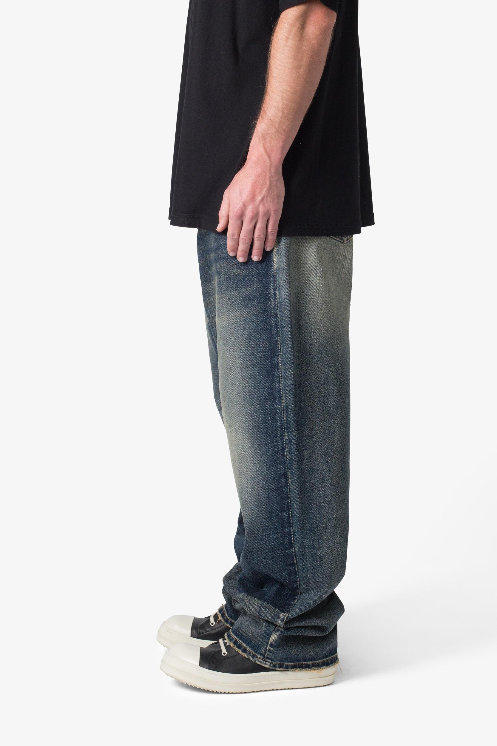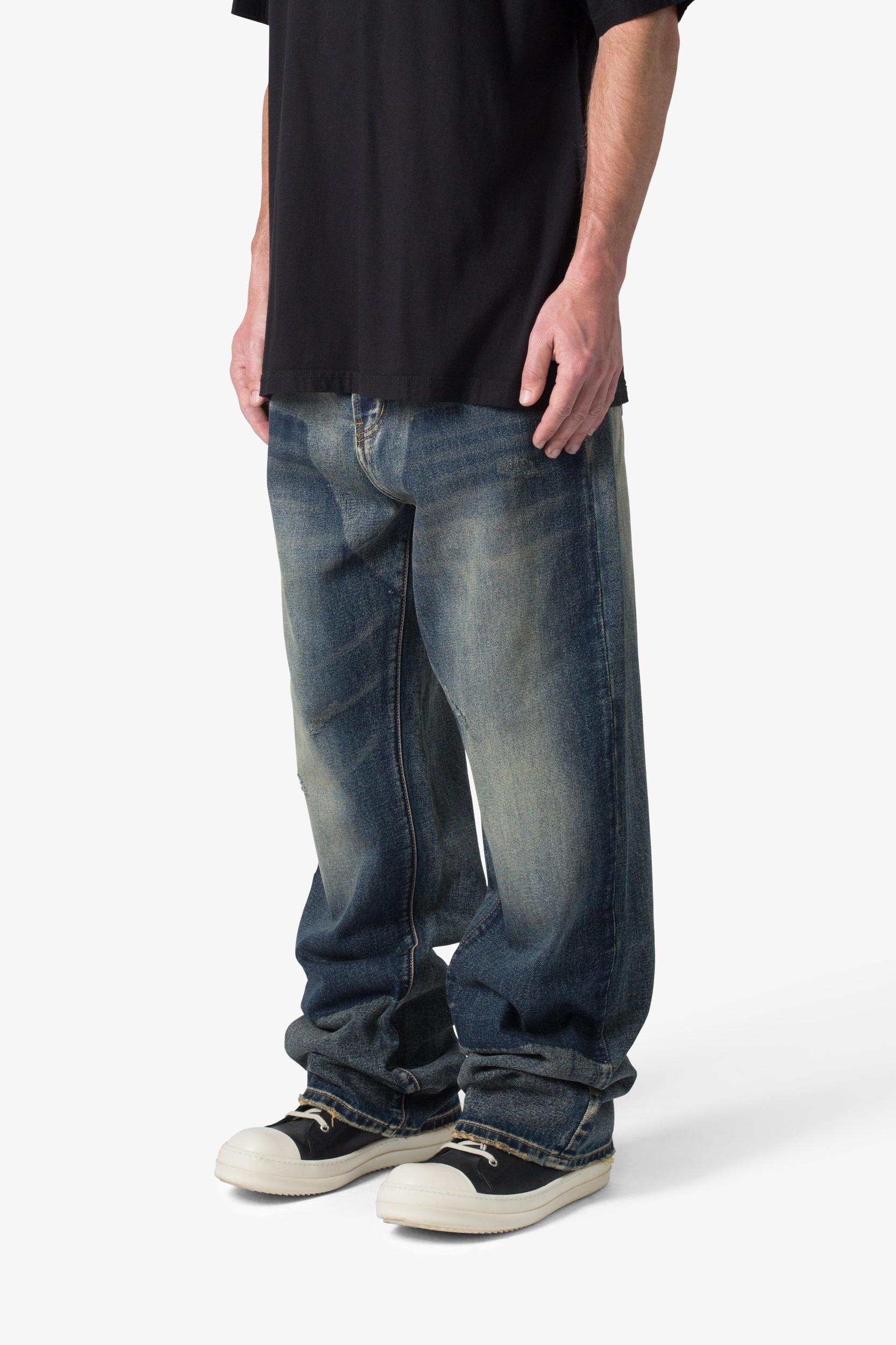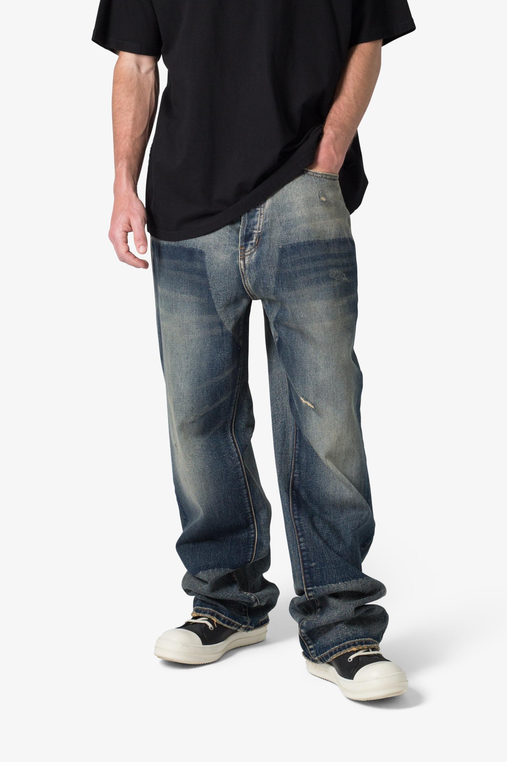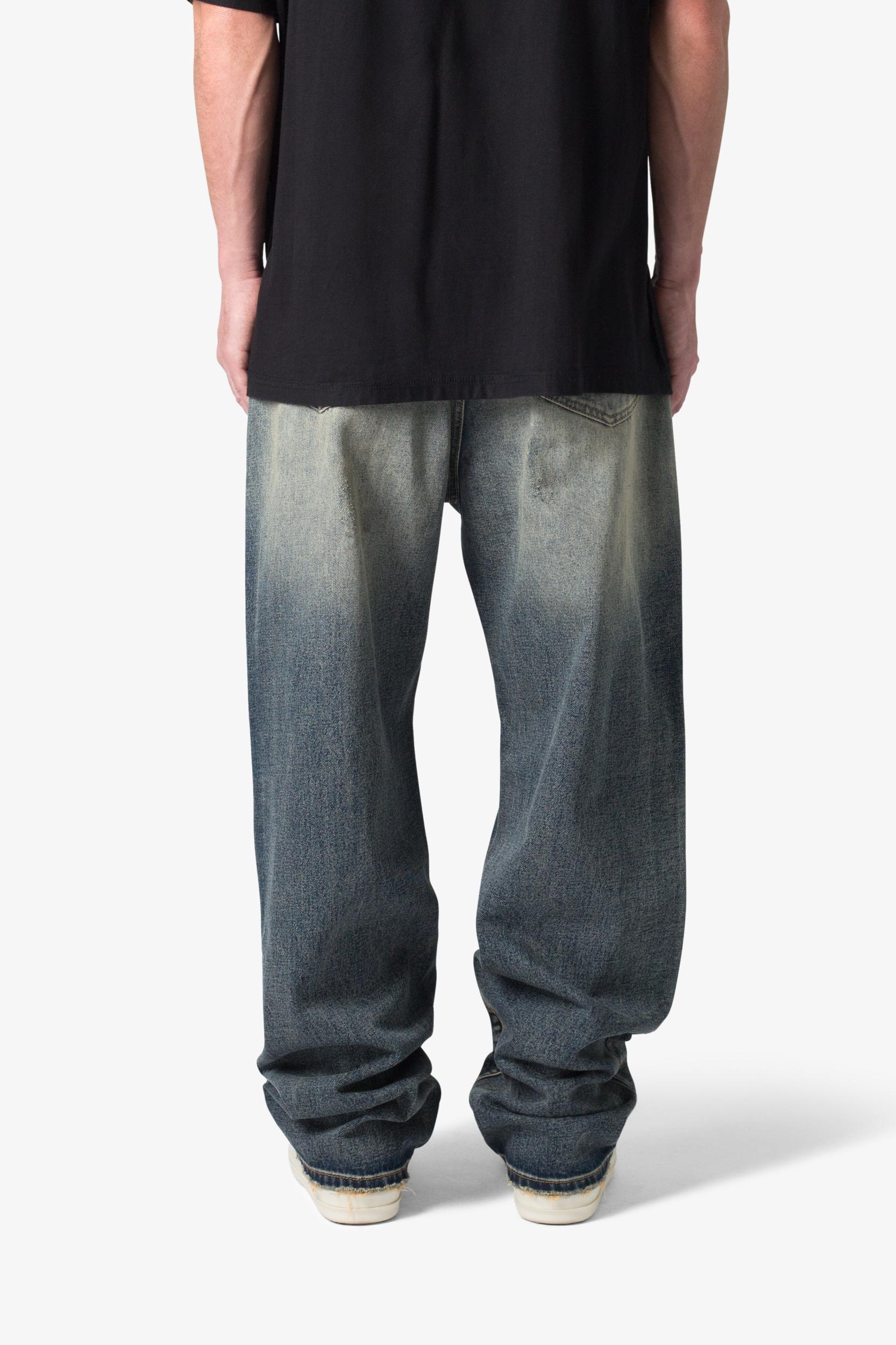 the Ultra Baggy Shadow Patch Denim are designed with a new oversized ultra baggy fit, constructed from denim with a dark wash, featuring standard five pocket denim details, witness wash from work panelling, and finished with a button placket. details ultra baggy fit throughout 100% cotton extended inseam model is 6’1,