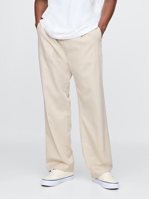 Supersoft cotton-Tencel blend pleated trousers. E-waist with front button closure, zip fly. Front slant pockets, back welt pockets. Pleating at front. Responsibly Made: This pair of pants is part of our Washwell program, which uses at least 20% less water as compared with conventional wash methods. We’ve saved over a billion liters of water through Washwell since 2016. This product was made in a factory that invests in gender equality and women’s empowerment. Through RISE (Reimagining Industry to Support Equality) and Gap Inc.’s program P.A.C.E. (Personal Advancement & Career Enhancement), we support people who make our clothes to build the skills, knowledge, confidence, and resilience needed to advance in work and life. Learn more here. #732411