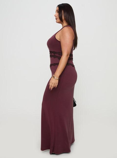 Ultraviolet One Shoulder Lace Maxi Dress Wine Curve