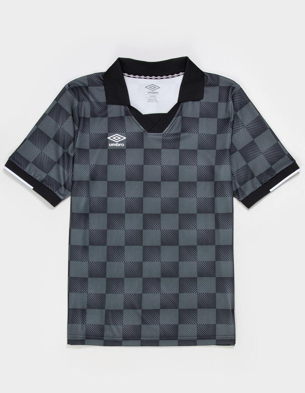 Umbro All Over Print Johnny Collar Shirt. Sublimated allover print. Logo at right chest. Woven tape at center back neck. Johnny collar. Short sleeve. 100% Polyester Pique with wicking. Machine wash. Imported.