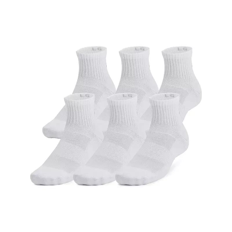 Keep your feet cool & comfortable with these Under Armour Training Cotton 6-Pack Quarter Socks. Click on this MENS GUIDE to find the perfect fit and more! Keep your feet cool & comfortable with these Under Armour Training Cotton 6-Pack Quarter Socks. Click on this MENS GUIDE to find the perfect fit and more! FEATURES Includes 6 pairs of socks Lightweight, soft cotton-blend fabric for all-day comfort Material wicks sweat & dries really fast Locked-in fit design keeps sock securely on heel for an adjustment free fit that wont fall down Medium cushioning placed strategically throughout foot protects high-impact areas without added bulk Mesh panels on top of foot for added breathability Built-in arch support helps reduce foot fatigueFIT & SIZING Fits shoe sizes: 4-16 Quarter socksFABRIC & CARE Cotton, polyester, elastane Machine wash Imported Size: XL. Color: White. Gender: male. Age Group: adult.