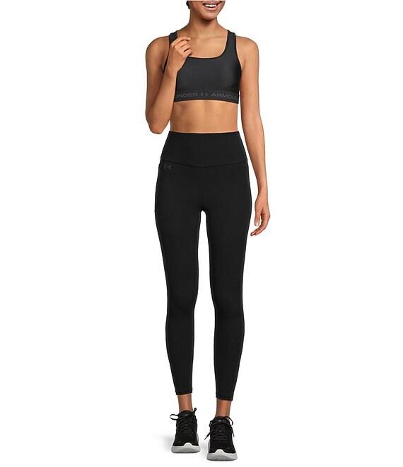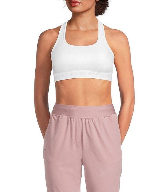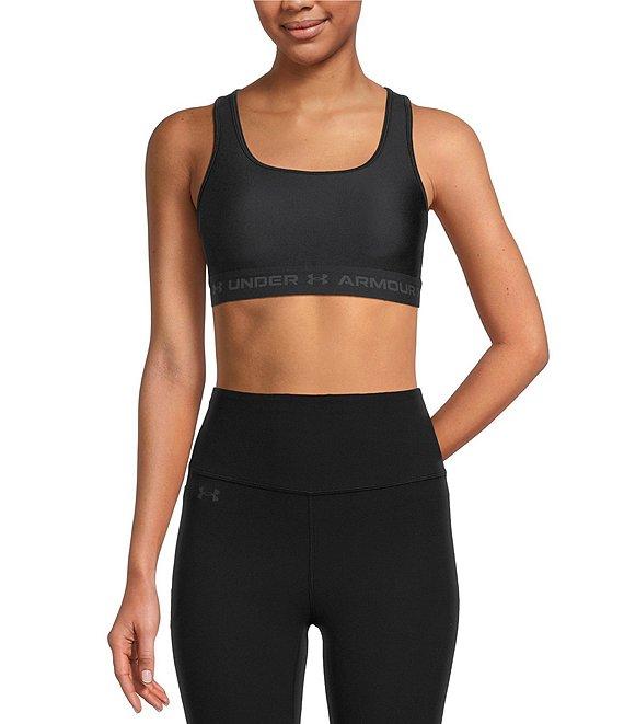 From Under Armour, this sports bra features: Super-smooth, double-layer Heatgear® fabrication Scoop neckline Sleeveless Elastic band feels super-smooth & soft Removable soft pads Material wicks sweat & dries really fast & light Crossover straps with updated keyhole detail for easier on/off Pullover construction Polyester/elastane Machine wash Imported.