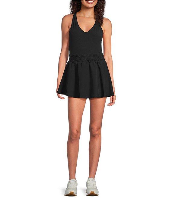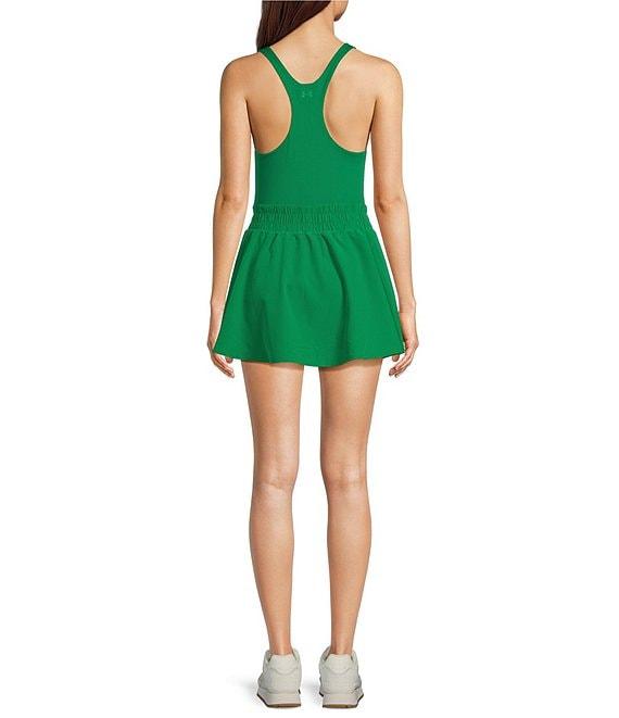 From Under Armour, this dress features: Light, stretch-woven fabric on the bottom & soft, brushed knit fabric on the top for comfort & durability V-neckline Sleeveless Fit & flare silhouette Built-in shelf bra for added coverage & support Elastic waistband cinches in at the waist for a flattering fit 4-way stretch material moves better in every direction Fast-drying and sweat-wicking technology so you can work hard without getting weighed down Built-in shorts for added coverage & support Classic racerback design Drop-in pocket on liner shorts Pull-on construction Approx. 12" length, 2" inseam for the shorts Knit: polyester/elastane; woven: polyester/elastane Machine wash/tumble dry low/do not iron Imported.