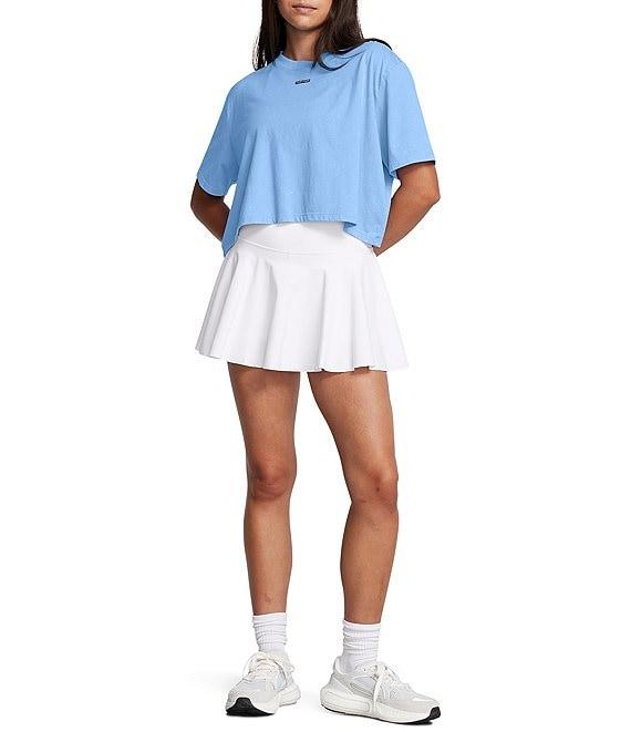 From Under Armour, this skort features: Ultra-soft fabric is breathable & comfortable fabrication Elastic waistband Pull-on construction 4-way stretch material moves better in every direction Built-in shorts for added coverage & support Odor control technology minimizes odor Side drop-in pocket on inner shorts Approx. 12.75" length, 2" inseam for the shorts Polyester/elastane Machine wash/tumble dry Imported.