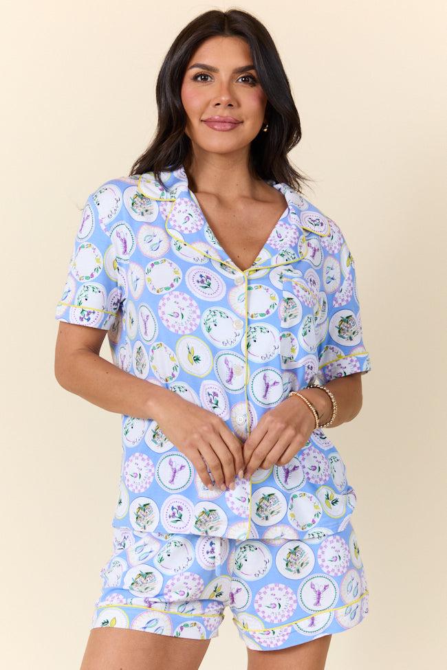 Under The Stars Decorative Plate Print Bamboo Pajama Top FINAL SALE