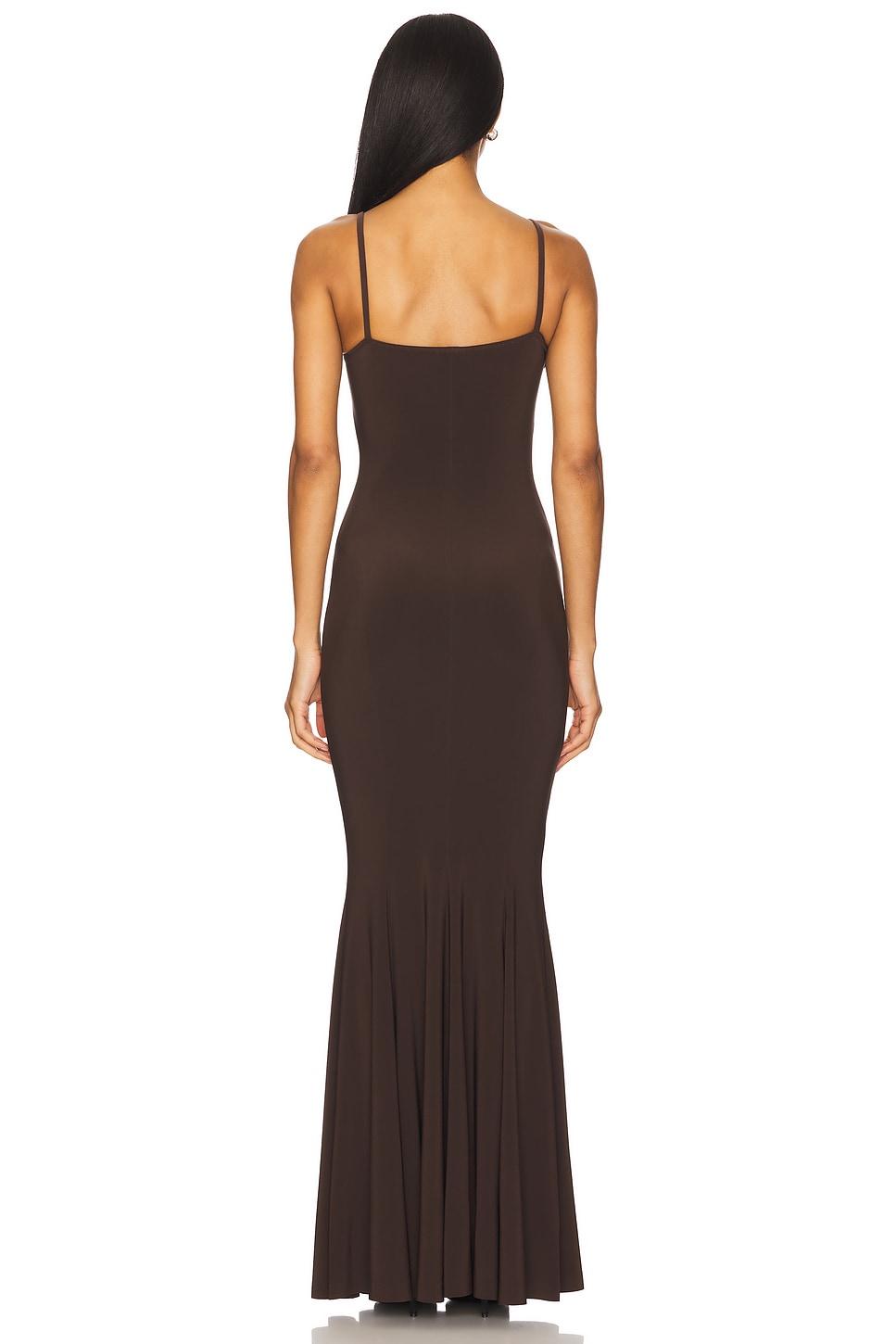 95% polyester, 5% spandex. Machine wash. Partially lined at bust. Pull-on styling. Underwire cups. Heavyweight slinky jersey fabric. style runs large, size down. Made in China. Revolve Style No. NKAM-WD731. Manufacturer Style No. KK1253PLP35028.