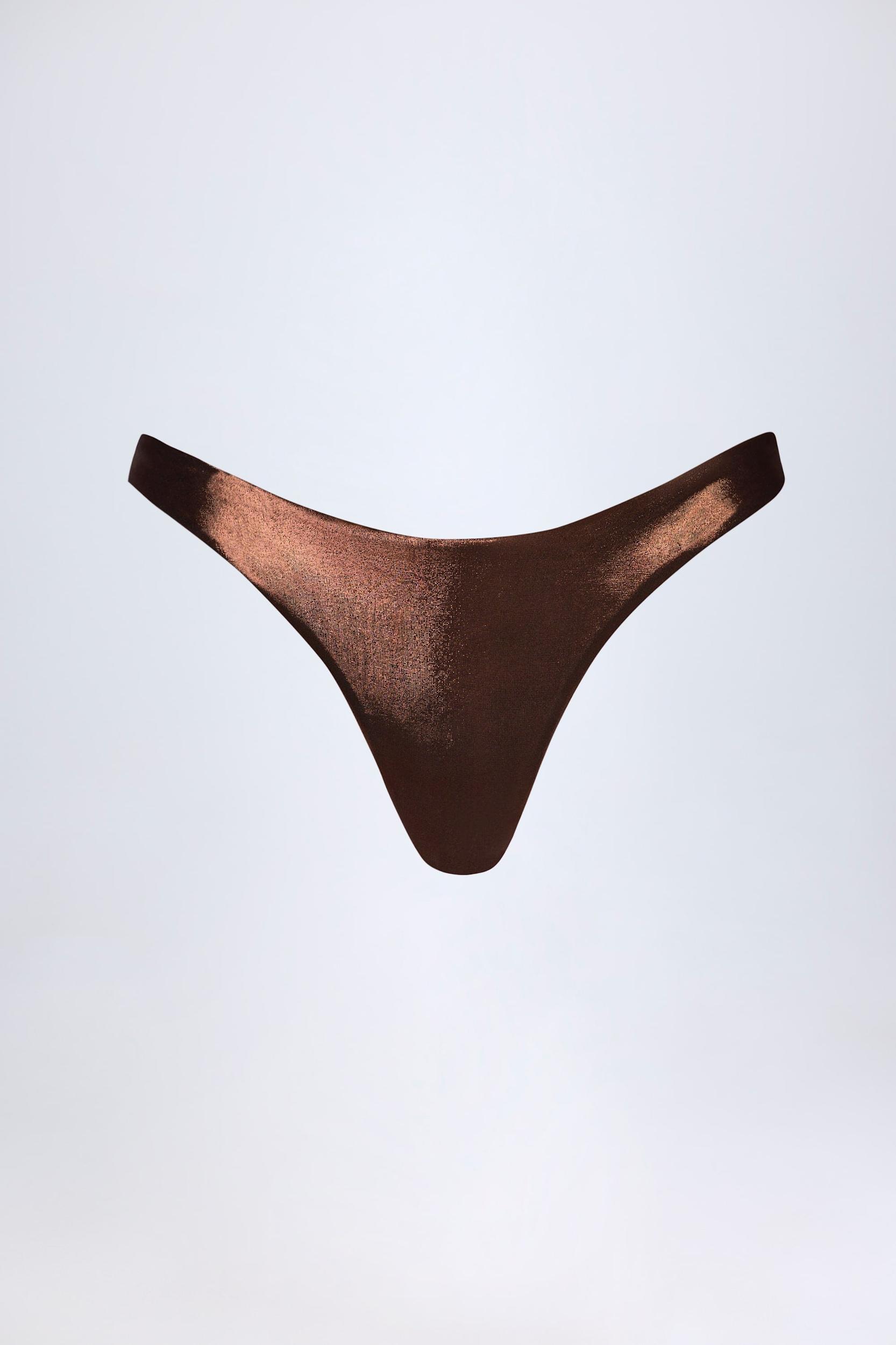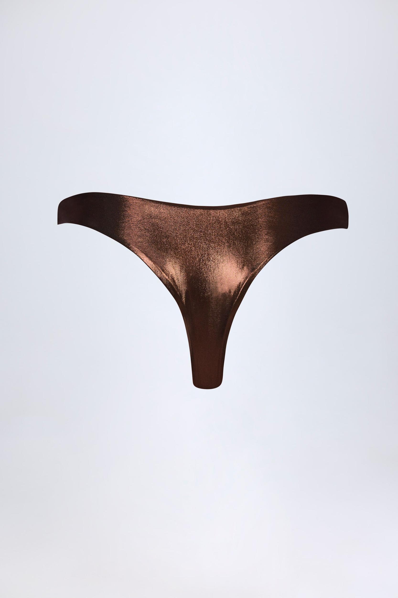 Made to shimmer. The Mar bikini bottoms are cut from our premium foiled jersey and feature a high-leg silhouette that's universally flattering. With a cheeky tanga cut and light-catching finish, they’re designed to stand out from poolside to party.• Mid-rise• Elasticated waist• Tanga cut• High-cut leg• Pull-on design• Standard bikini bottom length, front rise approx. 24cm based on a size S• Product code: NS10605