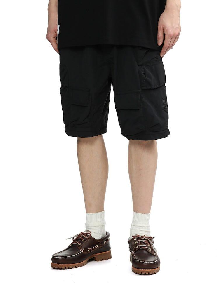 A nylon utility short with adjustable drawstring waist and pockets. FEATURES Drawstring waist 2 small tactical pockets on front 2 pockets at side seam 2 larger tactical pockets on front with zip closure 1 back pockets Alpha tape with print on belt Alpha paper label on wearers left above larger tactical pocket