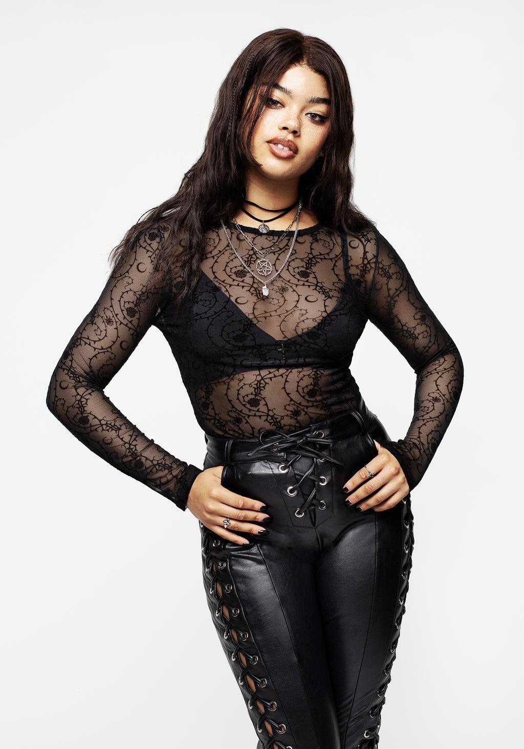 Something wicked this way comes...- Black velour bralet top with silver cross charm - Close-fitting garment with triangular cups - V-neckline with a wide stretchy band for easy overhead dressing - Adjustable shoulder straps to perfect your fit - Removable padded cups offer extra support & shaping if desired - Stretchy velour fabrication for comfort as well as style - Dainty silver rose crucifix charm hangs between cups - Style under or over your fave mesh bodysuits Main: 95% polyester, 5% elastaneLining: 92% polyester, 8% elastane