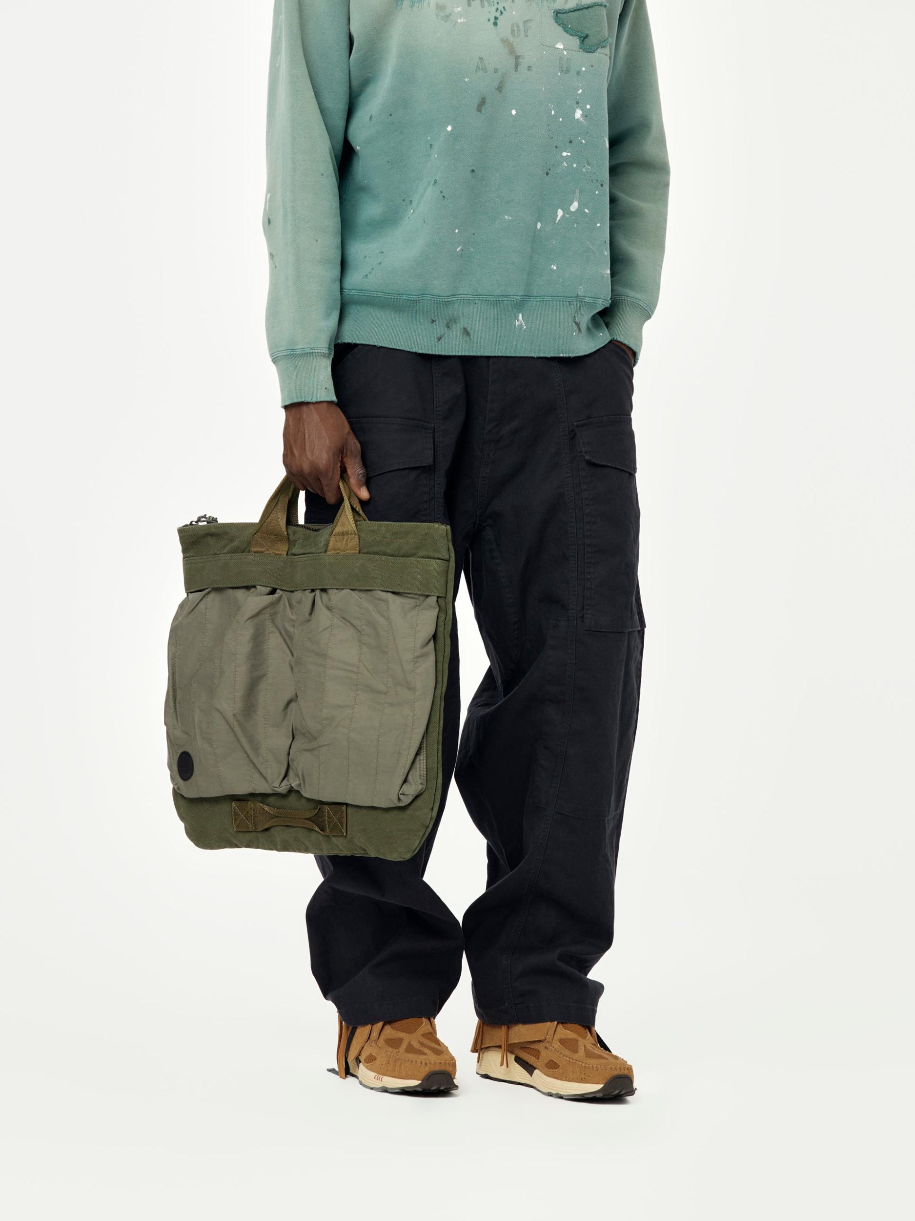Elevate your travel game with the UNION X POTR 2WAY HELMET BAG in olive. Made from a custom-developed, highly dense and resilient 3-layer fabric, Its high quality twill canvas and spacious main compartment provide durability and practicality for commuting or travel. With adjustable straps for versatile carrying and a woven brand label for style, this bag is a must-have for the modern, sophisticated traveler. Made in Japan