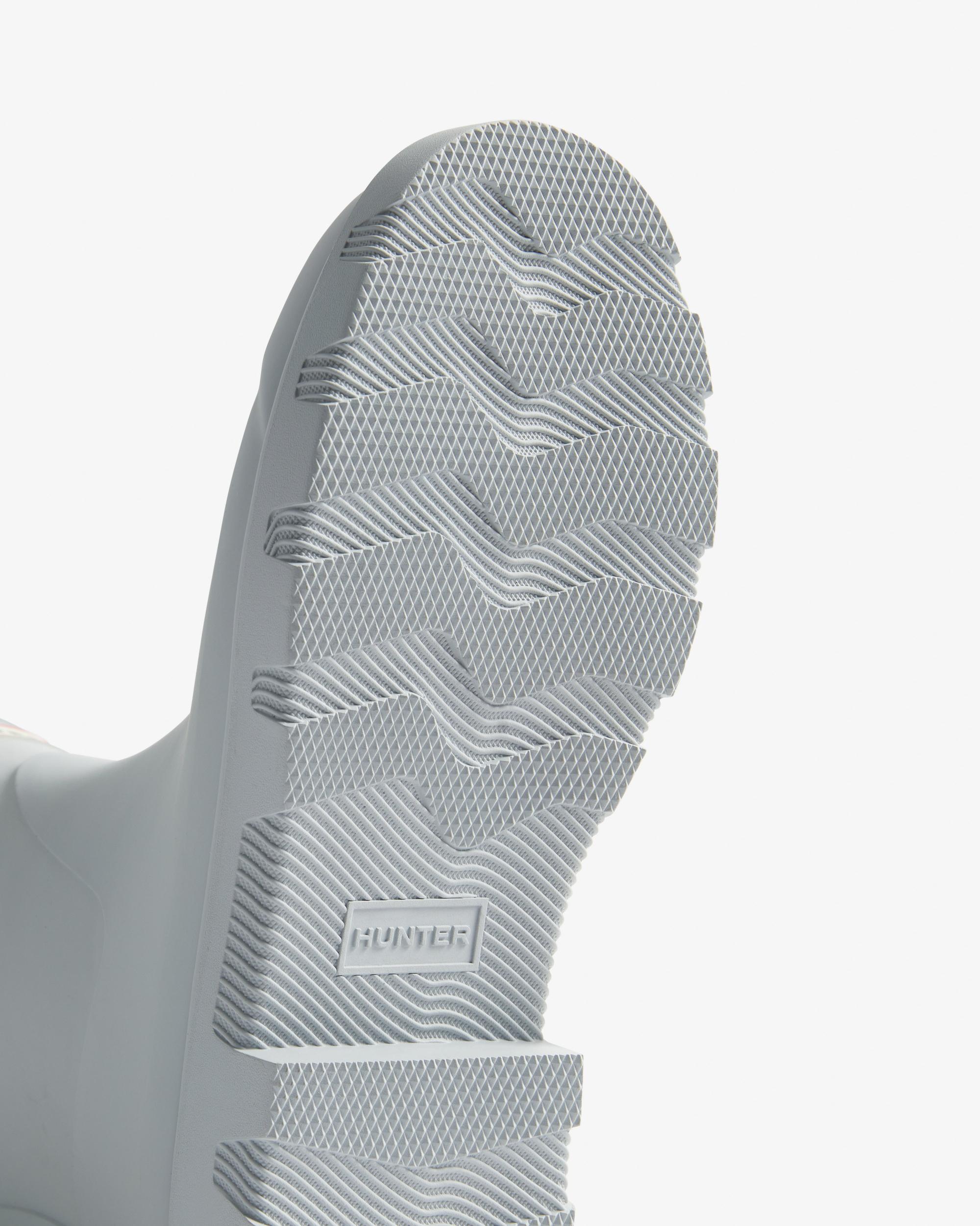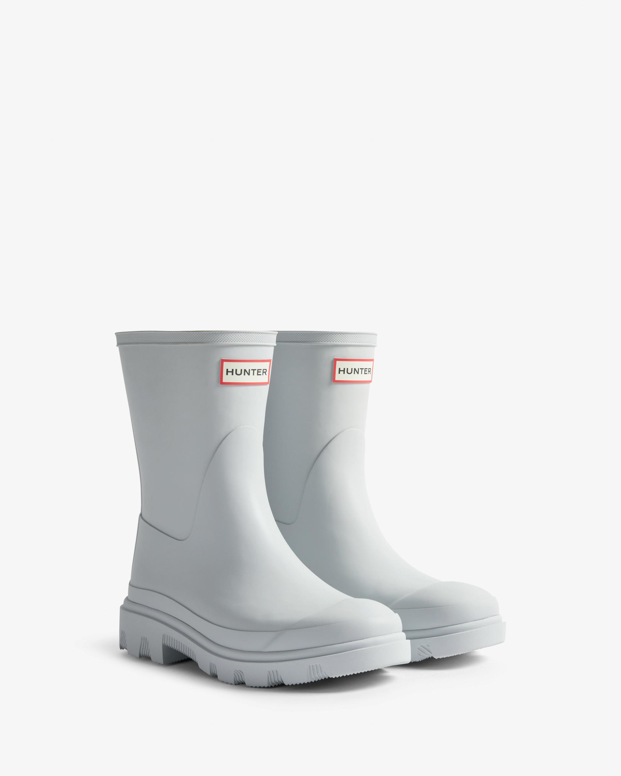 Women's Downpour Short Wellington Boot Size/Fit Summary: True to size, Regular fit. Introducing the newest addition to the Hunter family, our fully waterproof Women's Downpour Short Boot. With a sleek upper design and a lightweight moulded outsole, the unique tread has taken influence from natural shapes found in landscapes. Handcrafted and finished with a heritage topbind, this women's grey short boot seamlessly blends practicality and style. We recommend that all Hunter boots be worn with socks to protect the wearer's skin from contact with rubber.