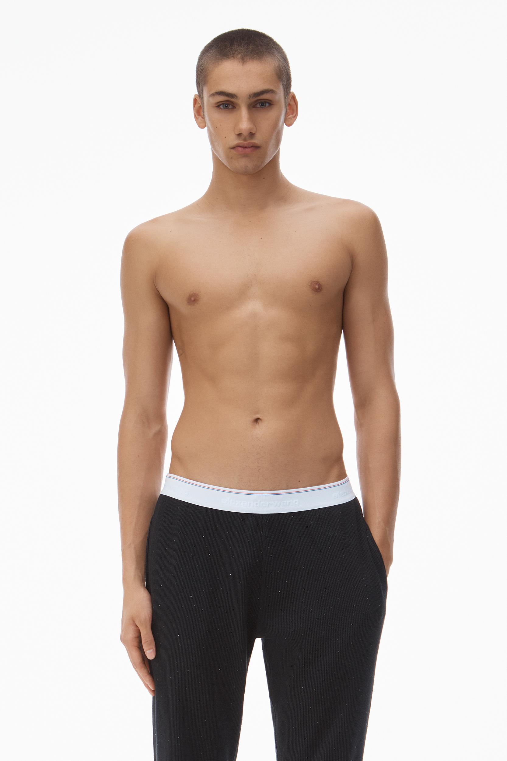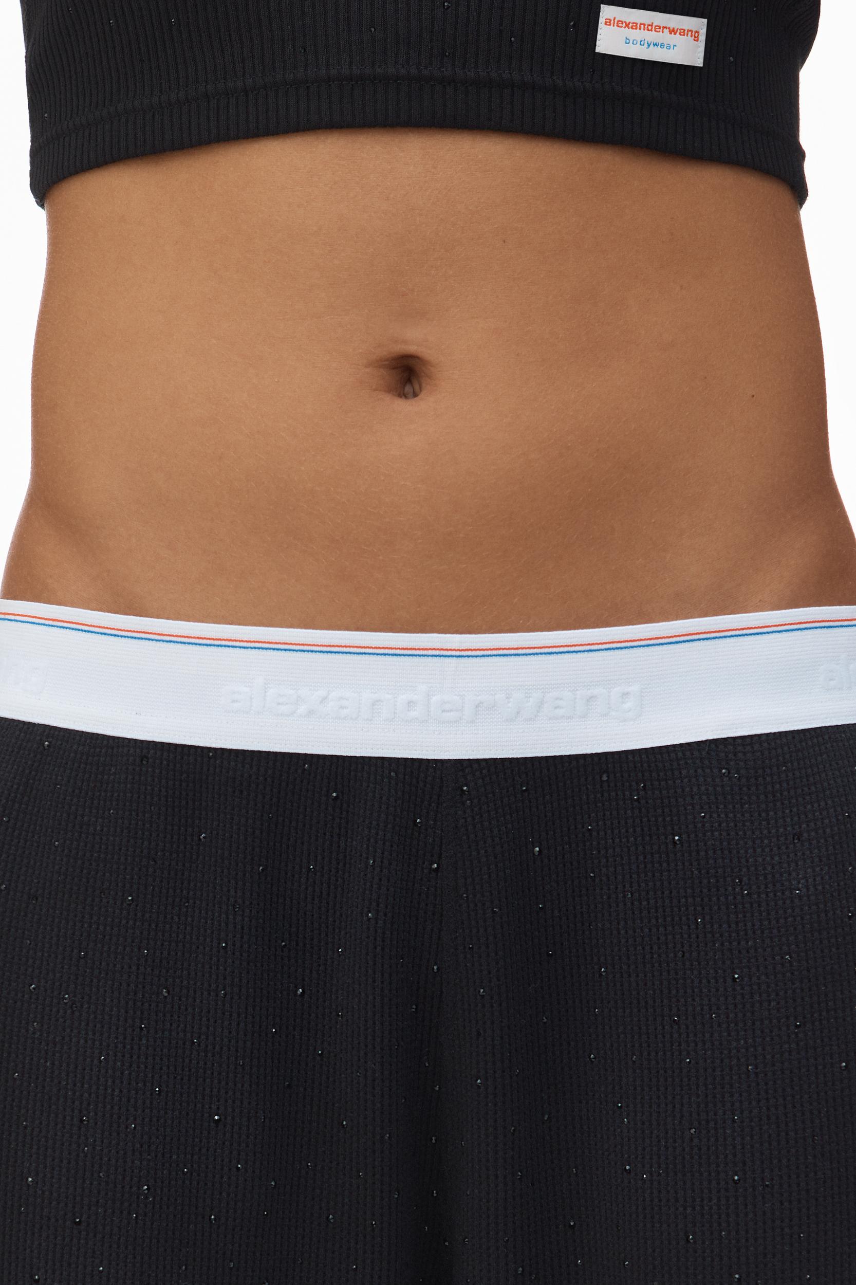 Crystal hotfix elevates these waffle-knit jogger pants in black, fastened with an elastic waistband.
