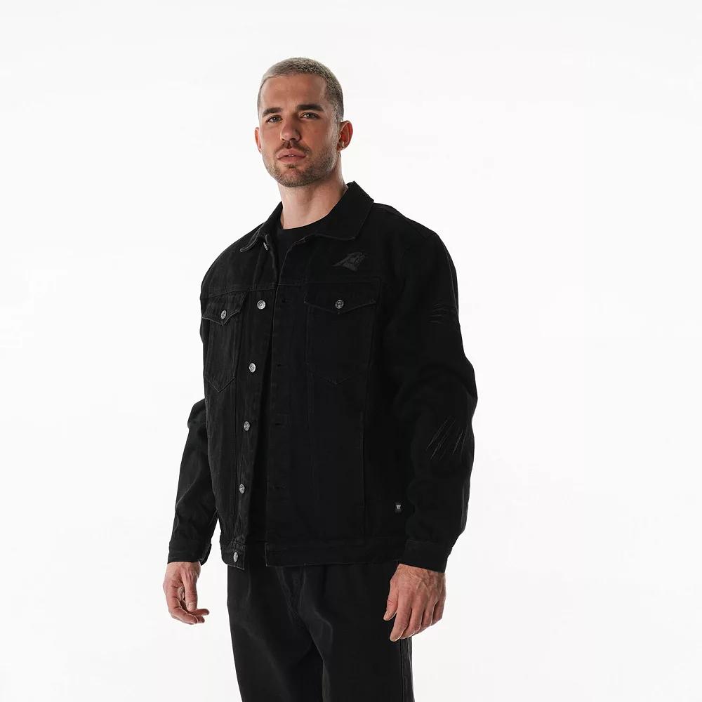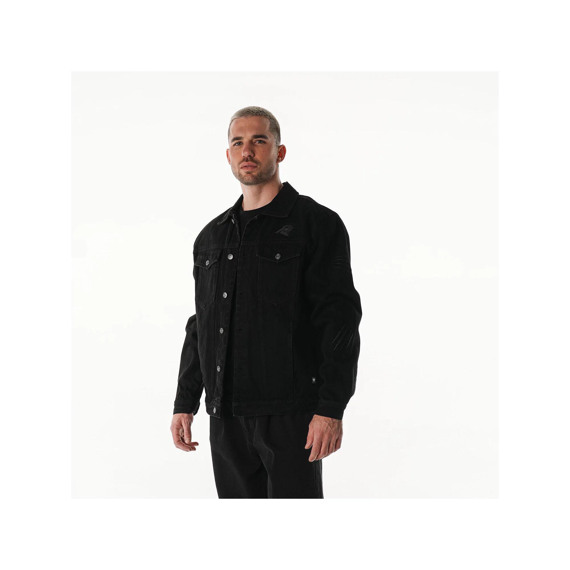 Show your team allegiance with this Carolina Panthers Button-Up Denim Jacket from The Wild Collective. This jacket features a Carolina Panthers logo, showcasing your unwavering support for the team. This midweight jacket, suitable for moderate temperatures, is made from 100% cotton. It also features embroidered fabric applique and graphics with raised details, two chest pockets, two front pockets and cuffs with one-button closure. Brand: The Wild Collective. Embroidered graphics with raised details. Full-button front. Embroidered fabric applique. Two chest pockets with one-button closure. Midweight jacket suitable for moderate temperatures. Long sleeve. Officially licensed. Two front pockets. Imported. Material: 100% Cotton. Cuffs with one-button closure. Machine wash, tumble dry low. Size: XS. Color: Turq A. Gender: female. Age Group: adult.