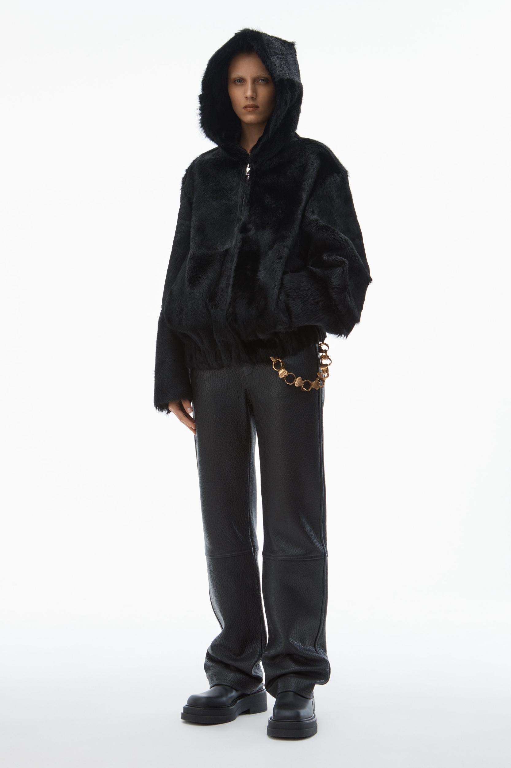 Sumptuous black calf hair elevates this zip-up hoodie.