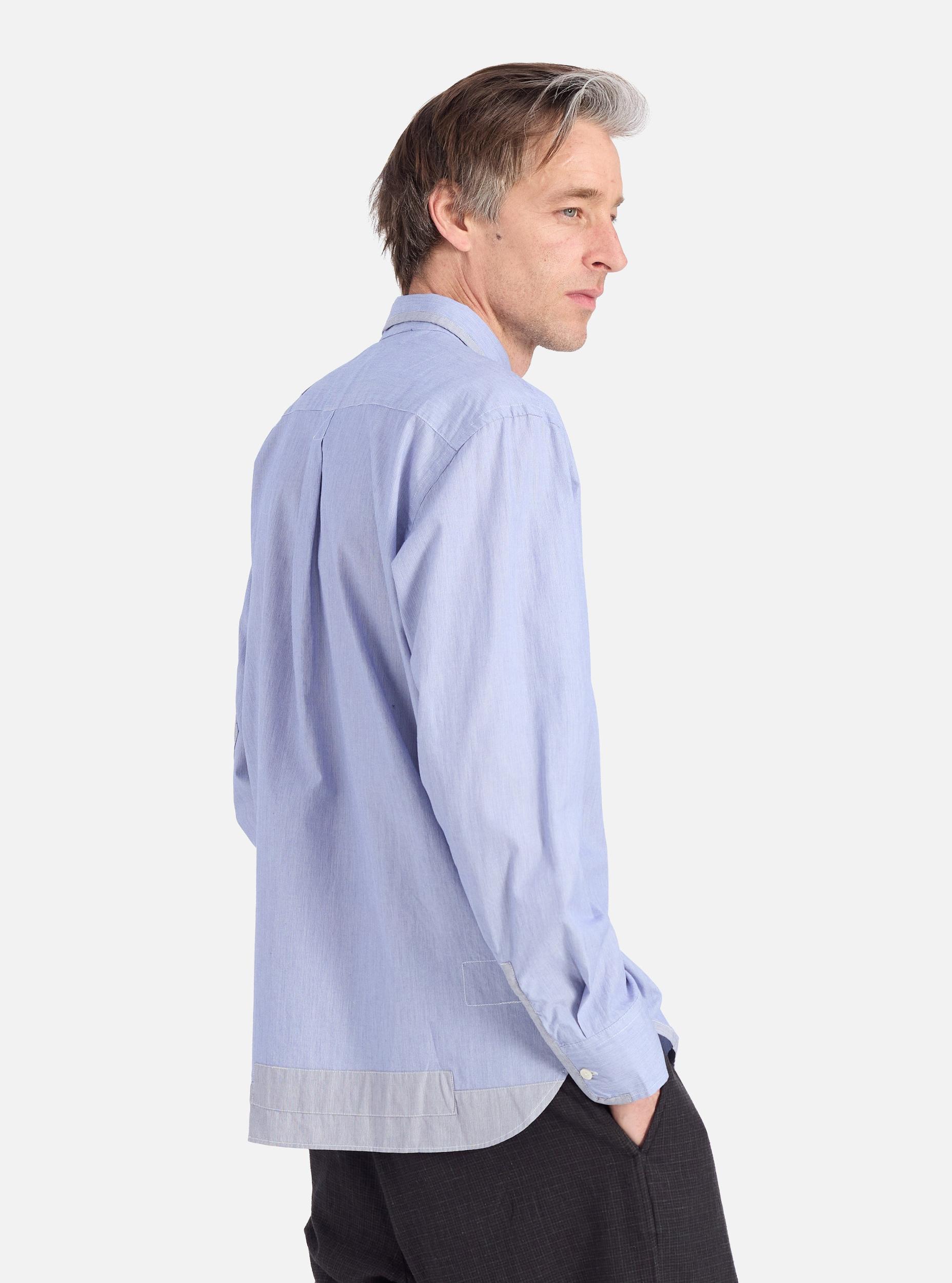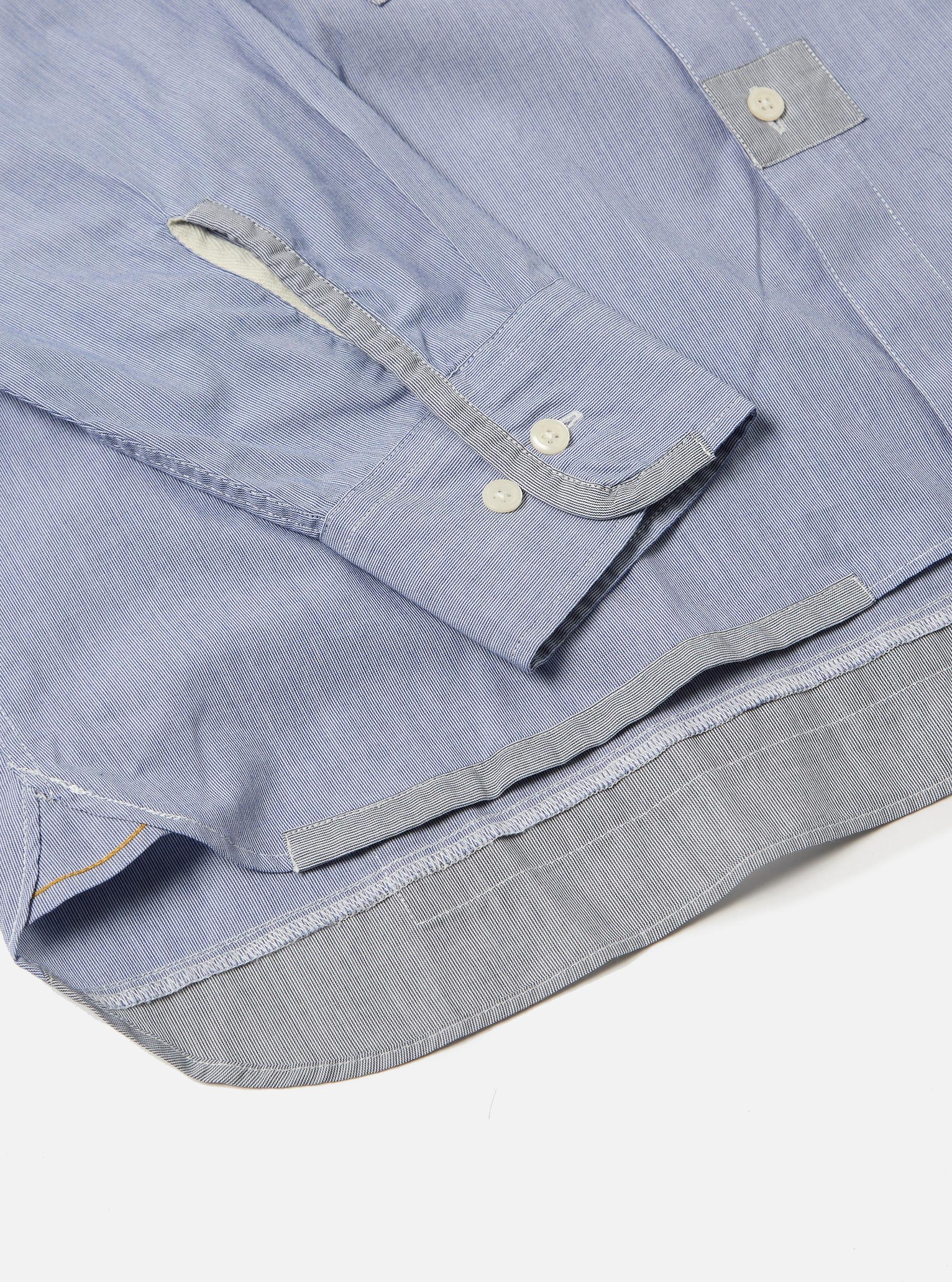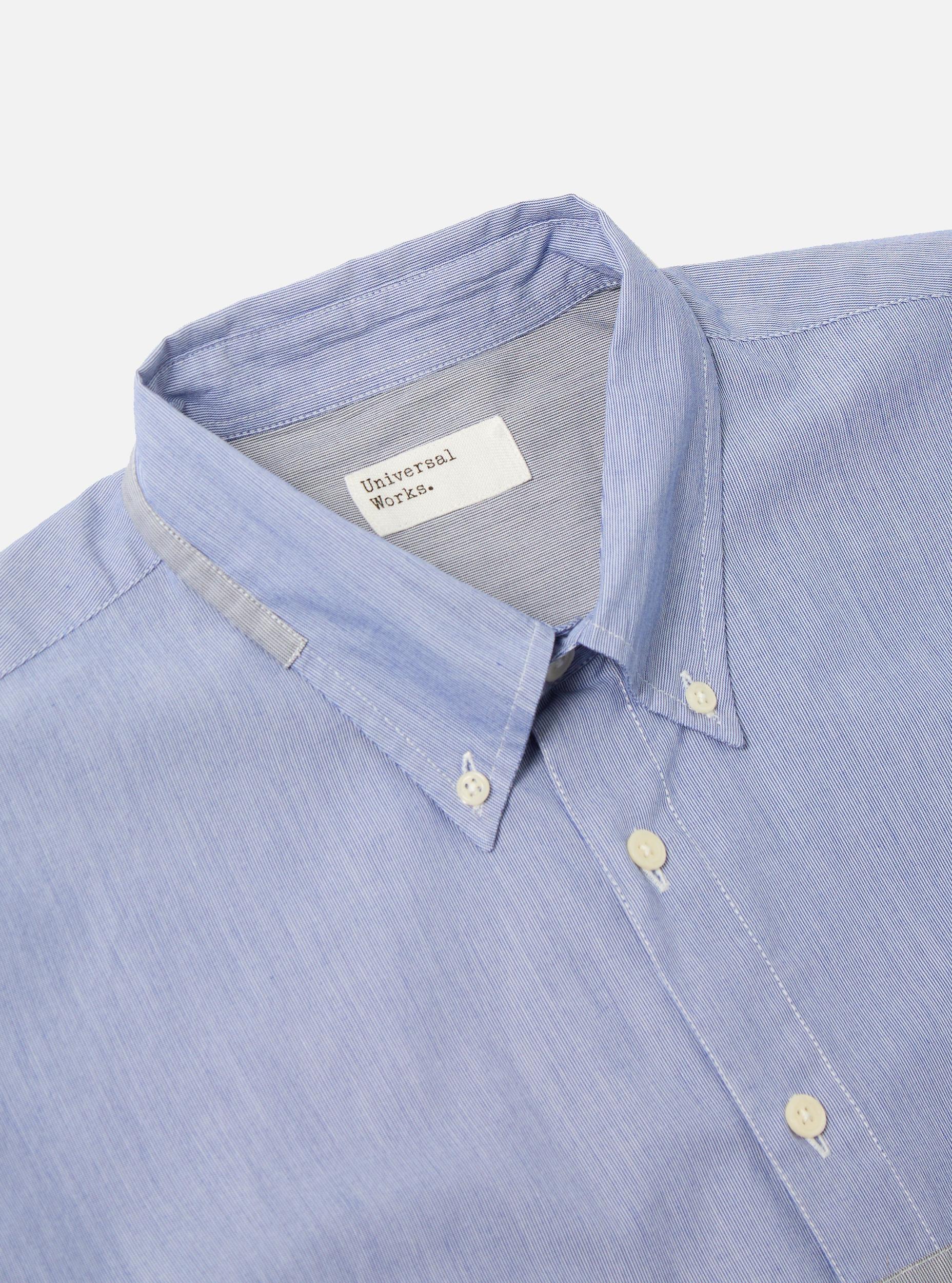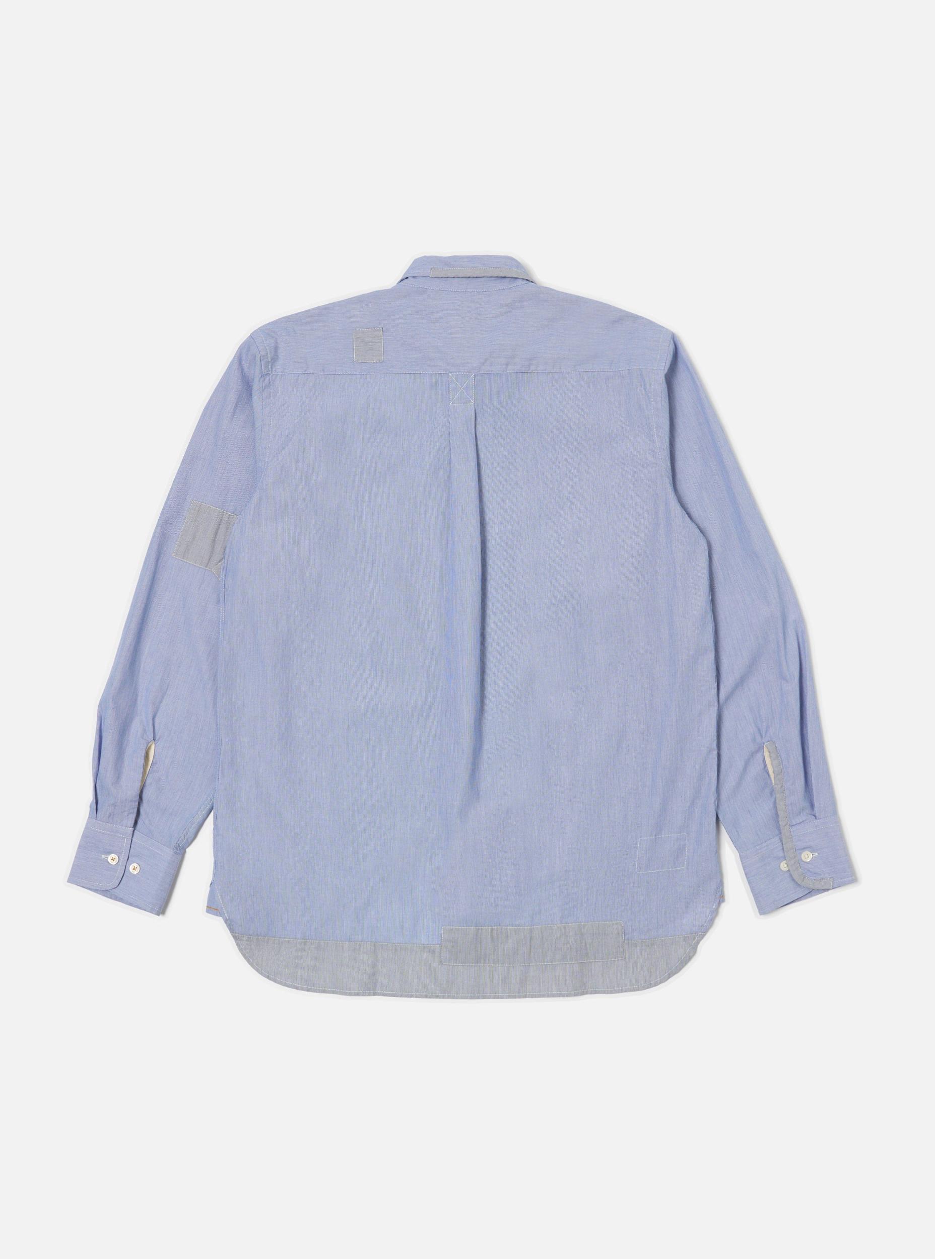 Universal Works Patched Lazy Day Shirt in Mixed Blue Mixed Classics