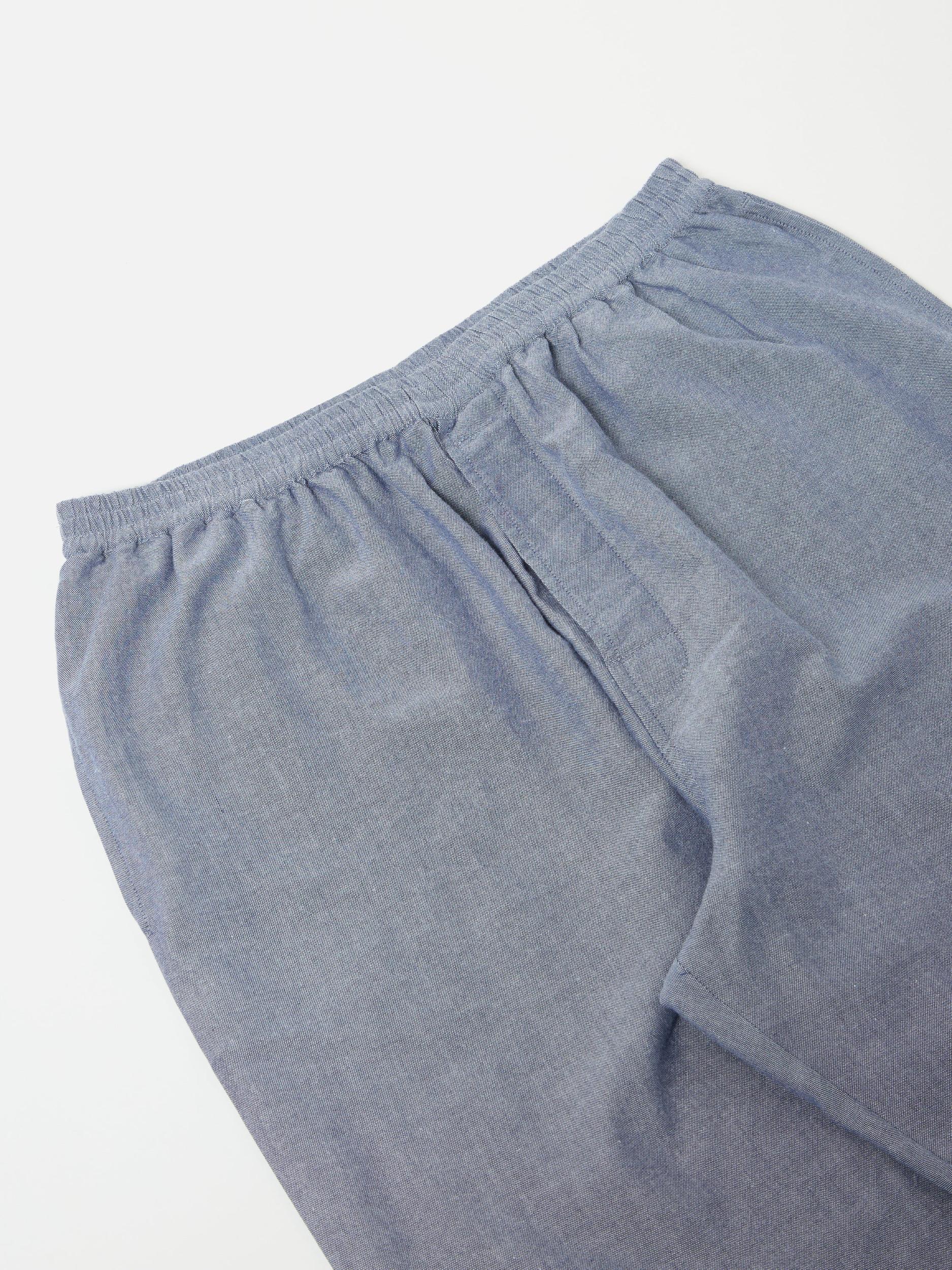 Back by popular demand, we've made pyjamas from repurposed fabrics from past seasons that would have otherwise ended up in a landfill. Offering you fresh and seasonally apt nightwear, these pieces are available in limited quantities. Once they're gone, they're gone! 'Oxford Cotton' is traditionally a basket weave consisting of ecru warp threads and coloured weft threads creating the traditional, subtle two-tone appearance of a classic Oxford. Its heritage is rooted in academia and sports, with its enduring popularity a testament to its comfort, durability, and timeless appeal. • Product Code: 30225. • Regular loose fitting. • Straight leg. • Pocket on the back. • Two slip pockets at the front. • Elasticated waistband. • Fabric Content: 100% Cotton. • Washcare: Wash at 30 degrees. Do not bleach. Do not tumble dry. Warm iron. Do not dry clean. Wash like colours together. [sizing] Please be aware that the measurements below are technical measurements that are based on the garment laid flat and are useful as a general guide only. For advice on sizing, we have a small guide available here - or alternatively, contact us if you'd like any help. Measured in Centimetres. S M L XL XXL XXXL Outside Leg - Inc. Waistband. 98.5 101.5 104.5 108.5 111.5 111.5 Waist - Relaxed. 33.5 36 38.5 41 43.5 46 Thigh - 2.5cm Below Crotch. 35.5 37 38.5 40 41.5 43 Hem Opening Width. 17 18 19 20 21 22 Front Rise - Inc. Waistband. 35 36 37 38 39 40 Back Rise - Inc. Waistband. 41.5 42.5 43.5 44.5 45.5 46.5