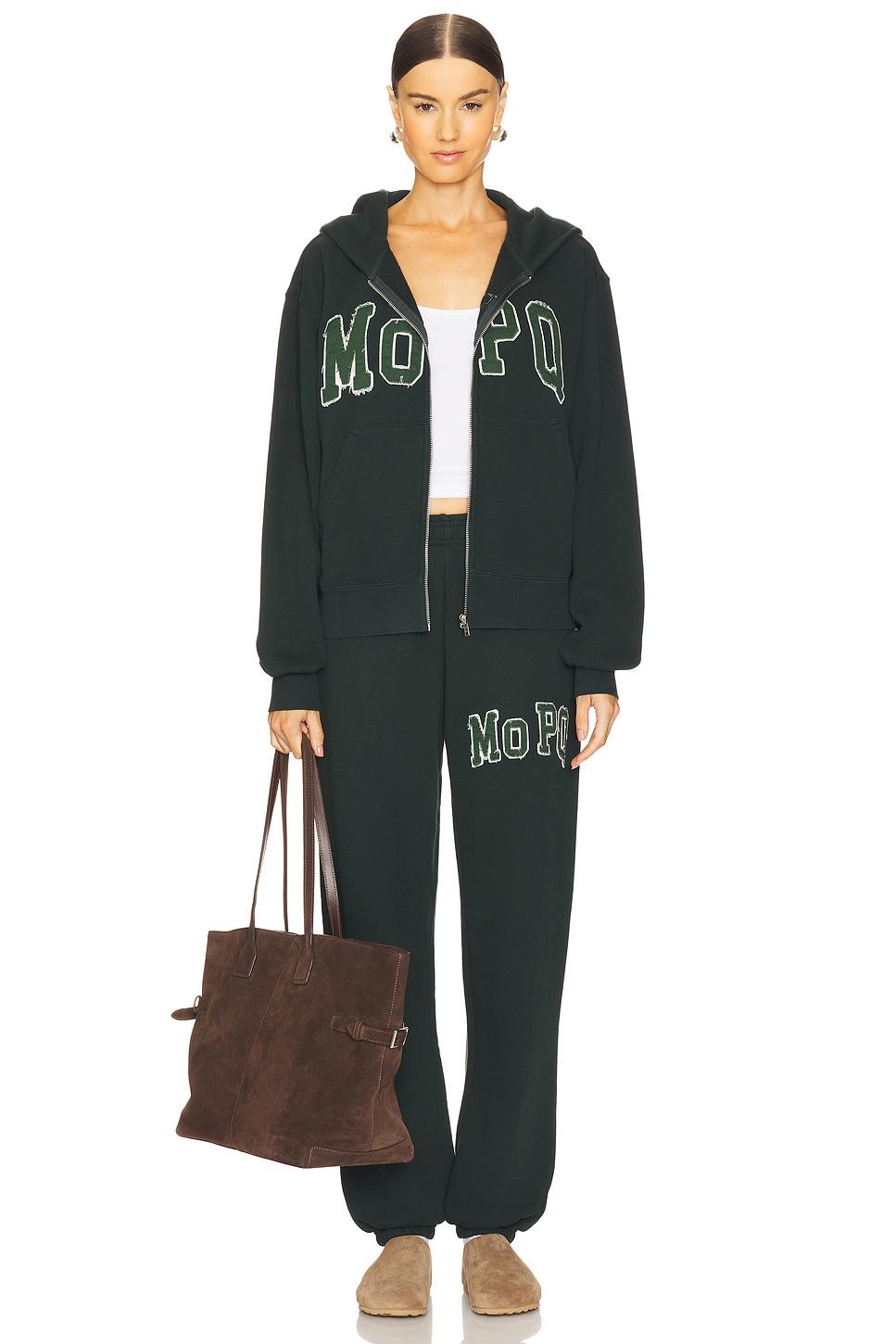 100% cotton. Made in China. Machine wash. Pull-on styling with elastic waistband. Logo detail at thigh. 3-pocket design. Fleece lining. 22" at the knee narrows to 14" at the leg opening. Revolve Style No. MUIF-MP17. Manufacturer Style No. MOPQ-FW24-19-PINE.