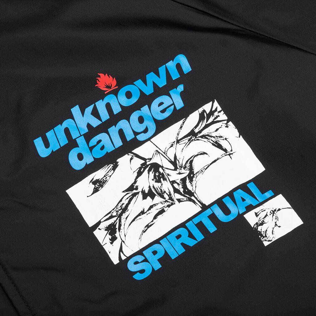 The Saint Michael Unknown Coach Jacket makes an impression with its premium aesthetic. The design features a nylon construction along with a snap button-down closure, pointed collar, and elastic trims. The hand pockets paired with the screen-printed logo branding and graphics finishes up the remainder of the design. 100% nylon Pointed collar Snap button-down closure Hand pockets Elastic trims Screen-printed logo branding Screen-printed graphics Style No: SM-S23-0000-066