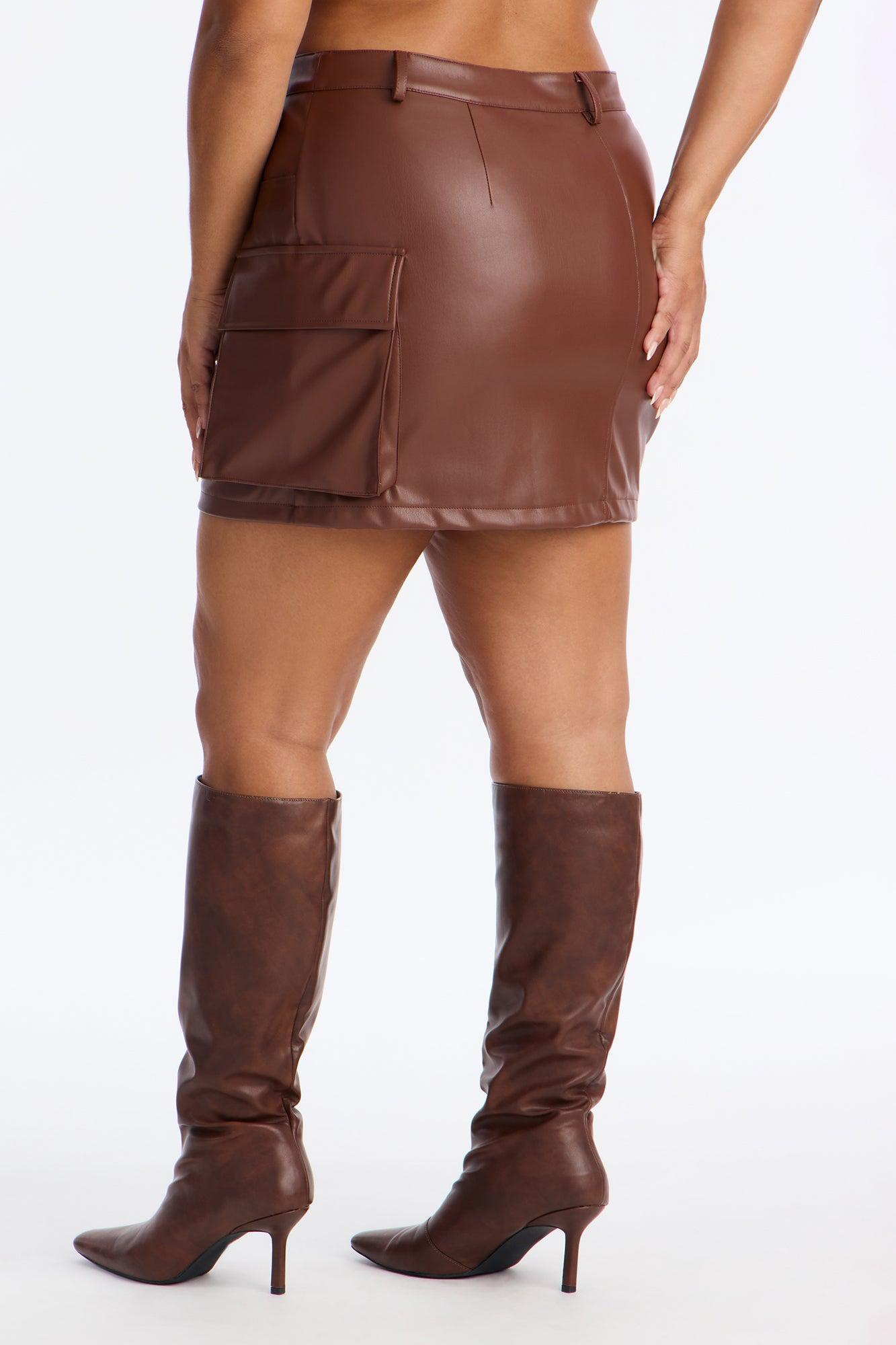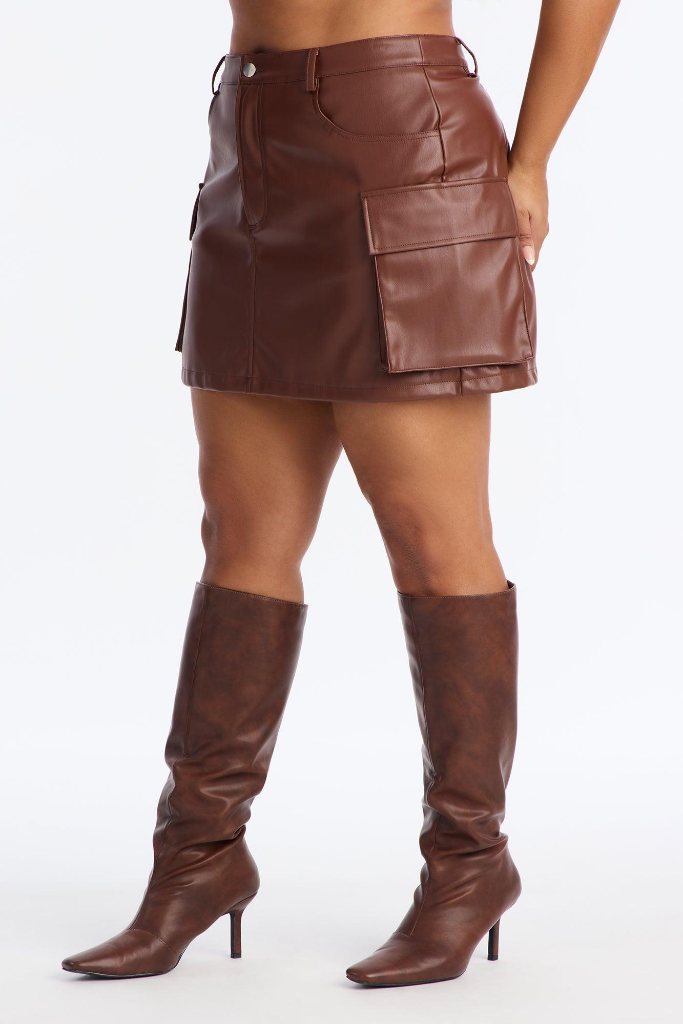 Unmatched Faux Leather Cargo Skirt - Chocolate Female