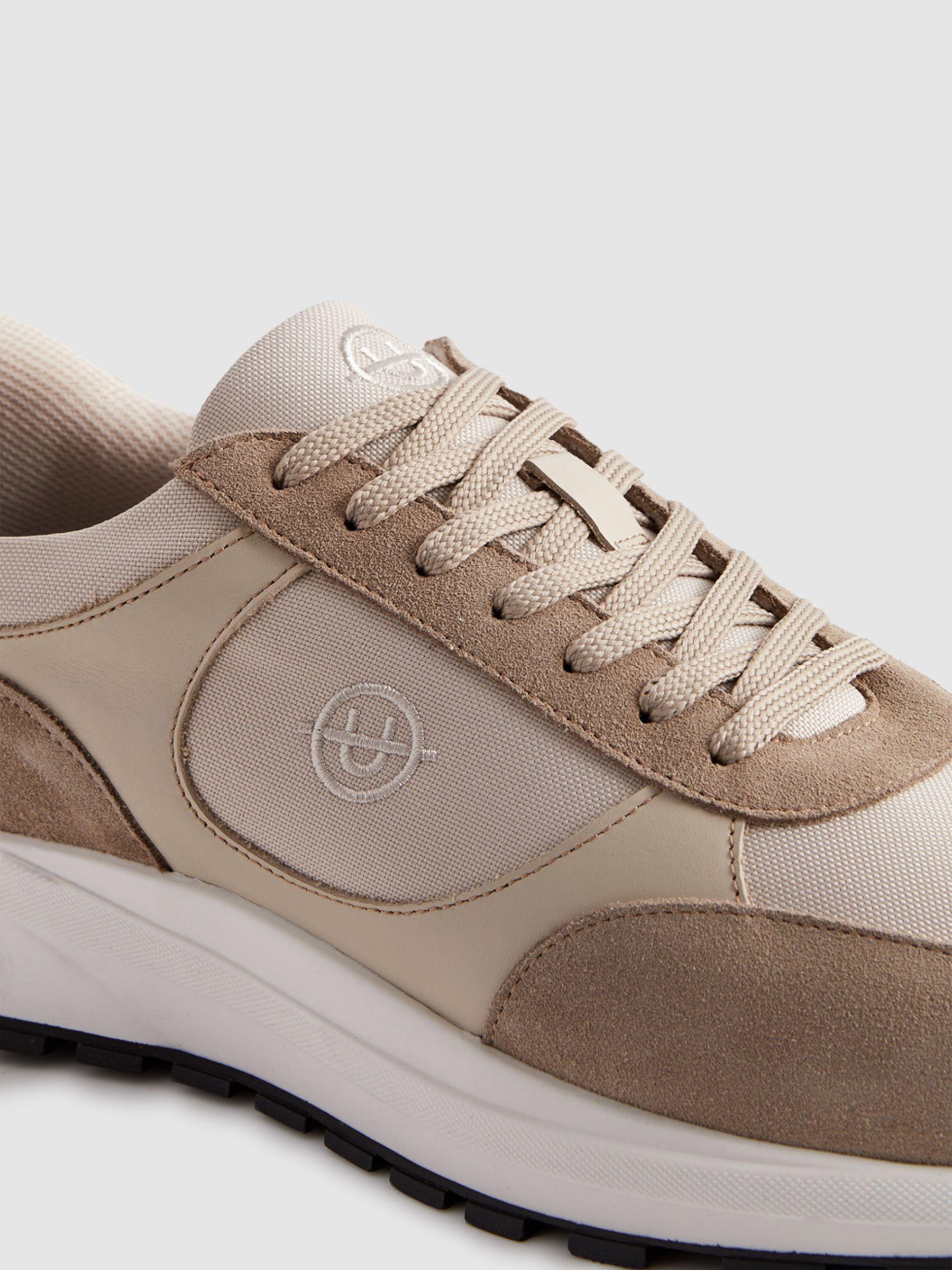 Unseen Suede Leather Plemont Trainers in Taupe/White