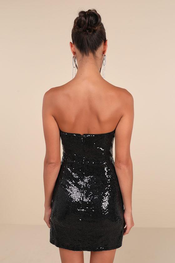 If you think all eyes are on you it's because they definitely are, all thanks to the Lulus Unstoppable Glow Black Sequin Strapless Mini Dress! A dazzling array of sequins dance across a mesh overlay as it shapes a strapless, princess-seamed bodice (with hidden no-slips strips and supportive side boning) and a straight neckline. The high, fitted waist tops a figure-flattering bodycon skirt that finishes at a cute mini hem. Hidden back zipper/clasp.