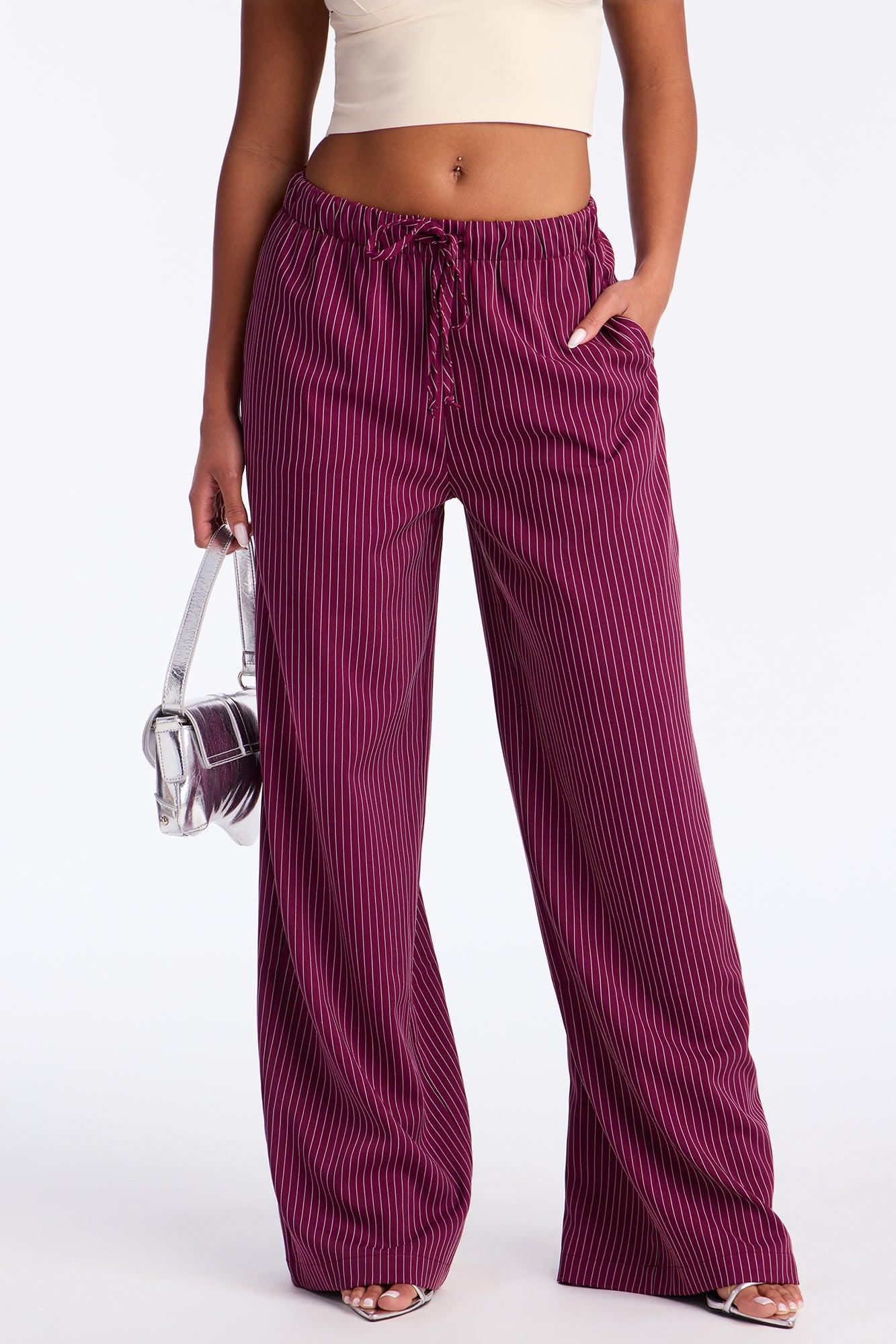 Until Next Time Pinstripe Trouser - Burgundy Female