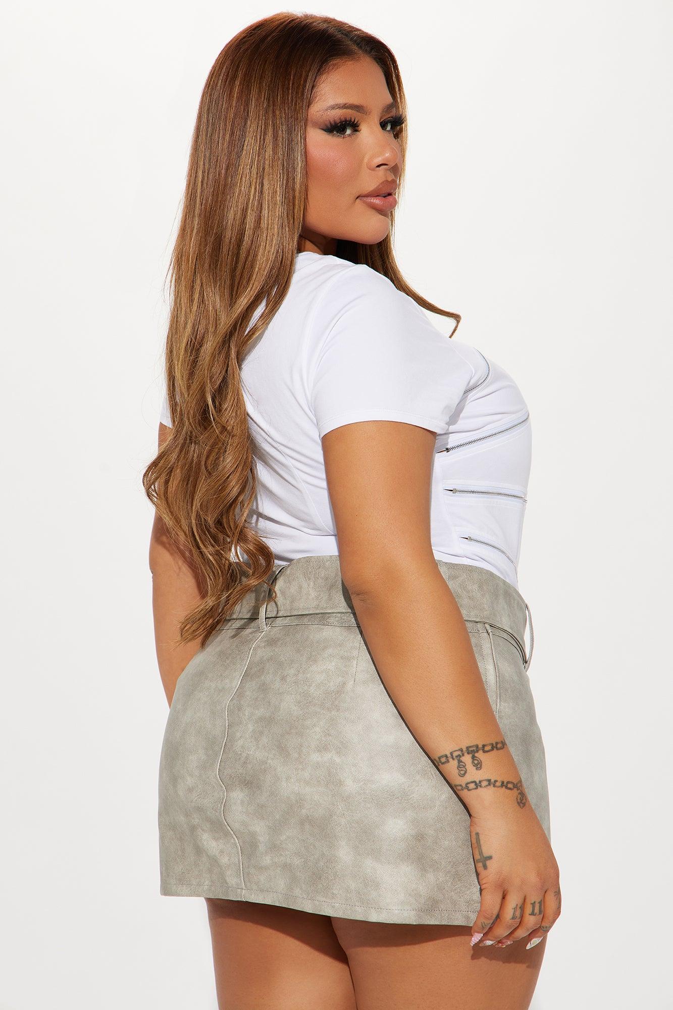 Available In White. Bodysuit Crew Neck Short Sleeve Zipper Detail Cheeky Bottom Snap Button Closure Stretch Final Sale Self: 95% Cotton 5% Spandex Imported California Proposition 65WARNING: Cancer and Reproductive Harm - www.P65Warnings.ca.gov.