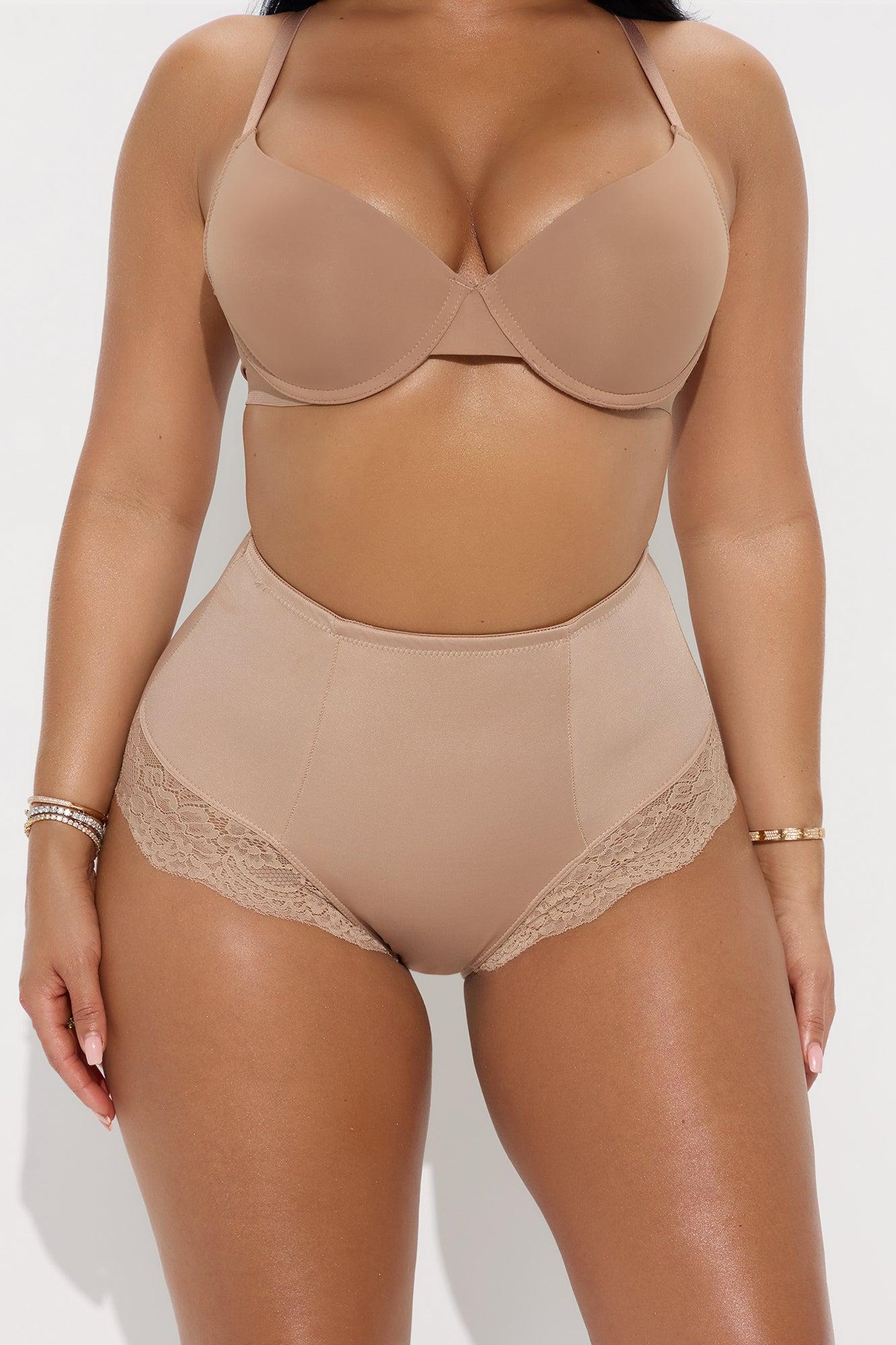 Available In Khaki, White, And Black. Light/Medium Hold Shapewear Shorts Shapewear Panty High Waist Lace Stretch Contrast Stitching Stretch Final Sale Body: 90% Polyester 10% Spandex Lace: 90% Nylon 10% spandex Mesh: 90% Nylon 10% Spandex Imported