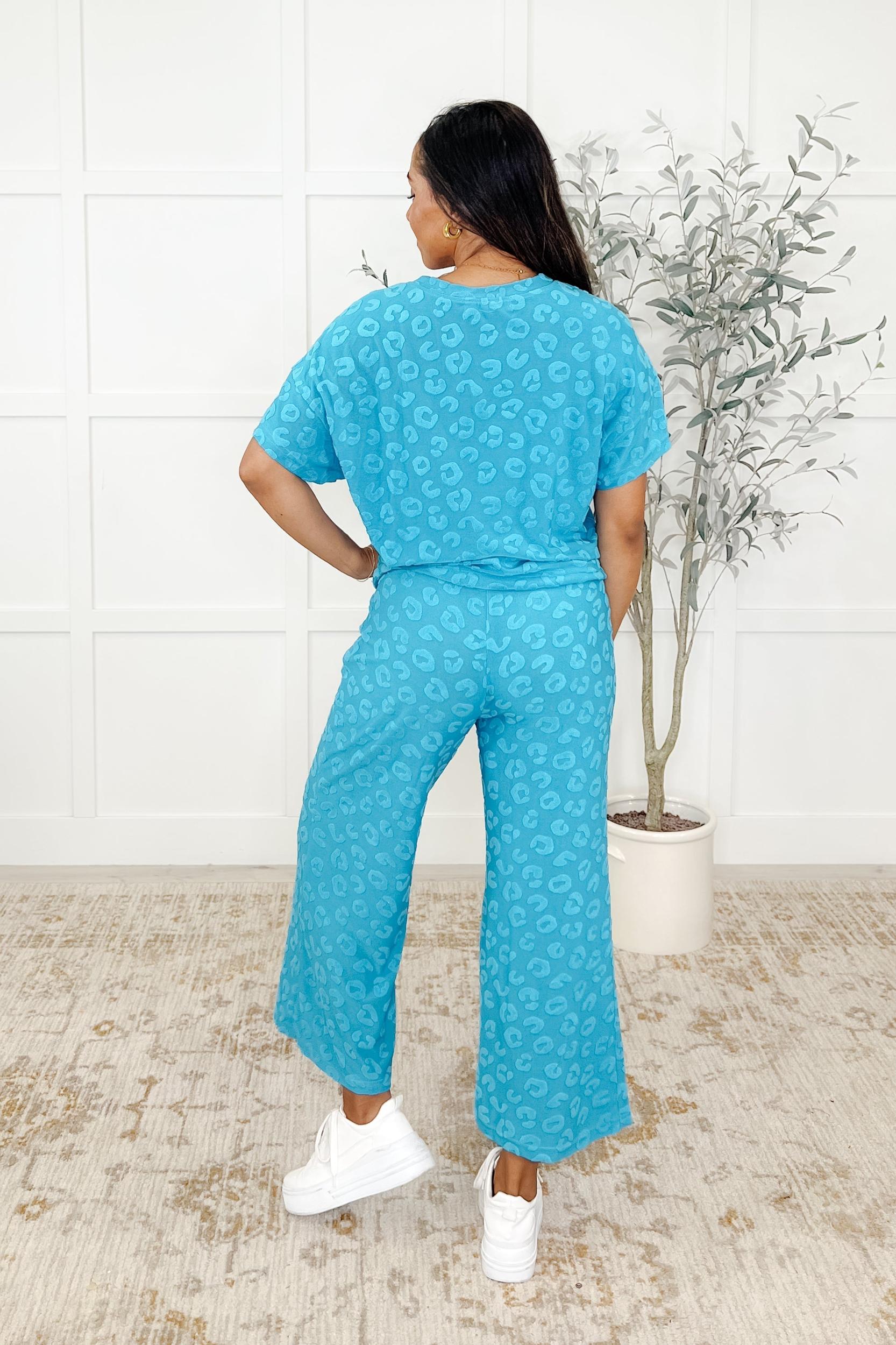 Hit a stylish home run with the Up to Bat Leopard Print Set! Made with a jacquard knit for ultimate comfort, this set features a banded, round neckline and an exaggerated hemline. The functional drawstring and side pockets add a practical touch, while the contrast pattern details and wide leg bring a fierce, on-trend look. Game on!