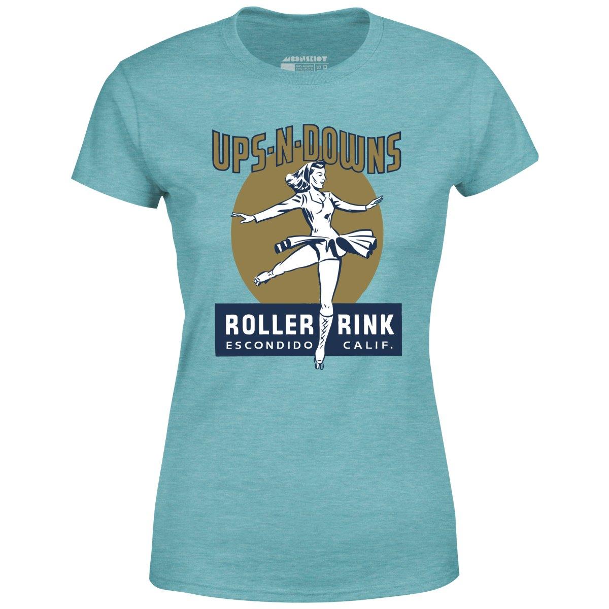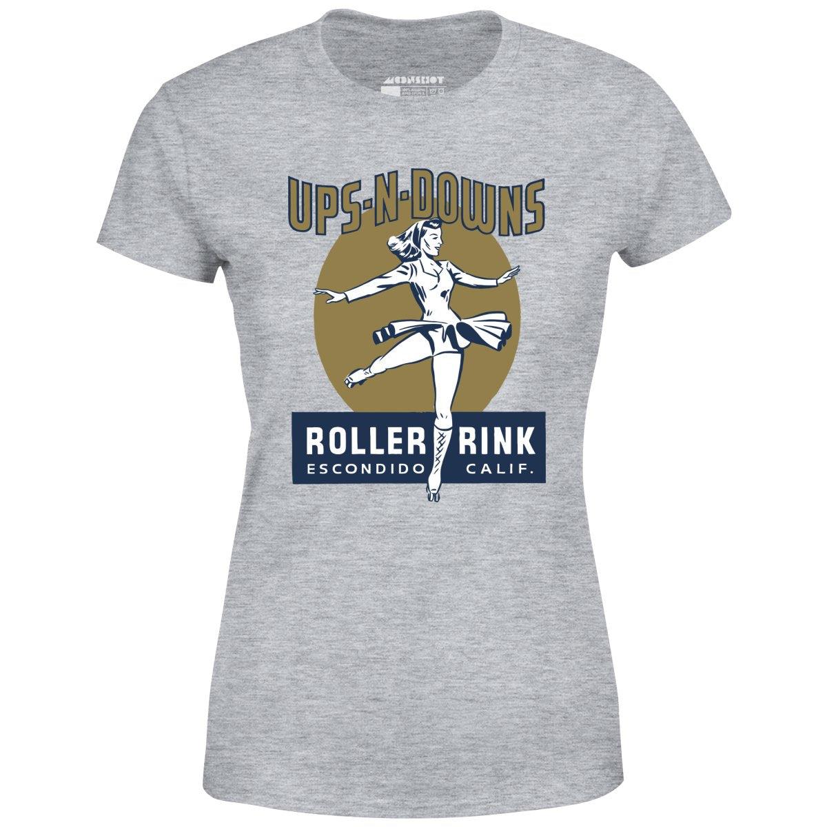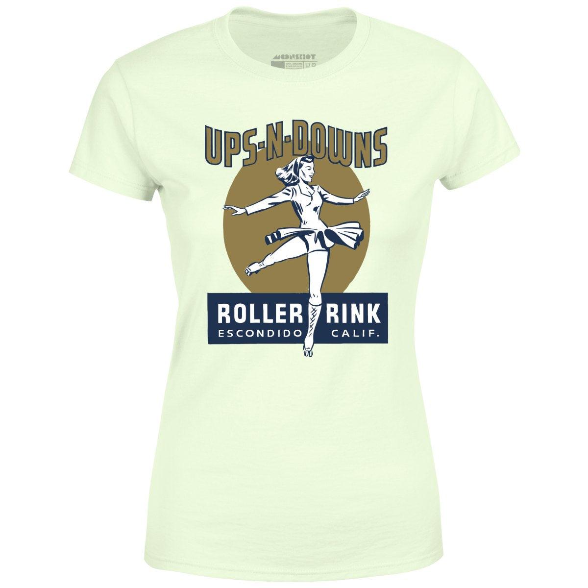 Ups-N-Downs was an old school roller skating rink located at 862 N. Broadway in Escondido, California. It opened in 1952 and closed long ago. This retro design is part of our iconic old school roller skating rink collection. Inspired by the classic, vintage defunct roller skating rinks of yesteryear. Printed on our super soft 100% ringspun & combed cotton women's T-Shirt. Or upgrade to our Luxury 52/48 cotton/poly vintage heather edition for an even softer classic look. We print & ship all of our high quality graphic tees in the USA.